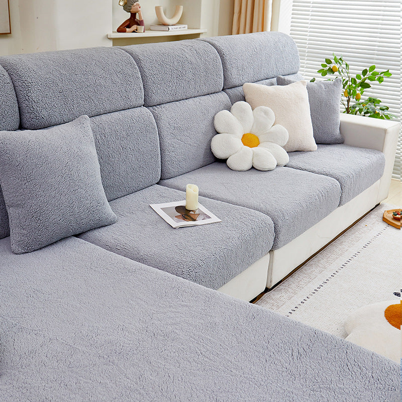 PlushGuard Teddy Fleece Water-Resistant Stretch Sofa Cover – Full Wrap, Anti-Slip Protection