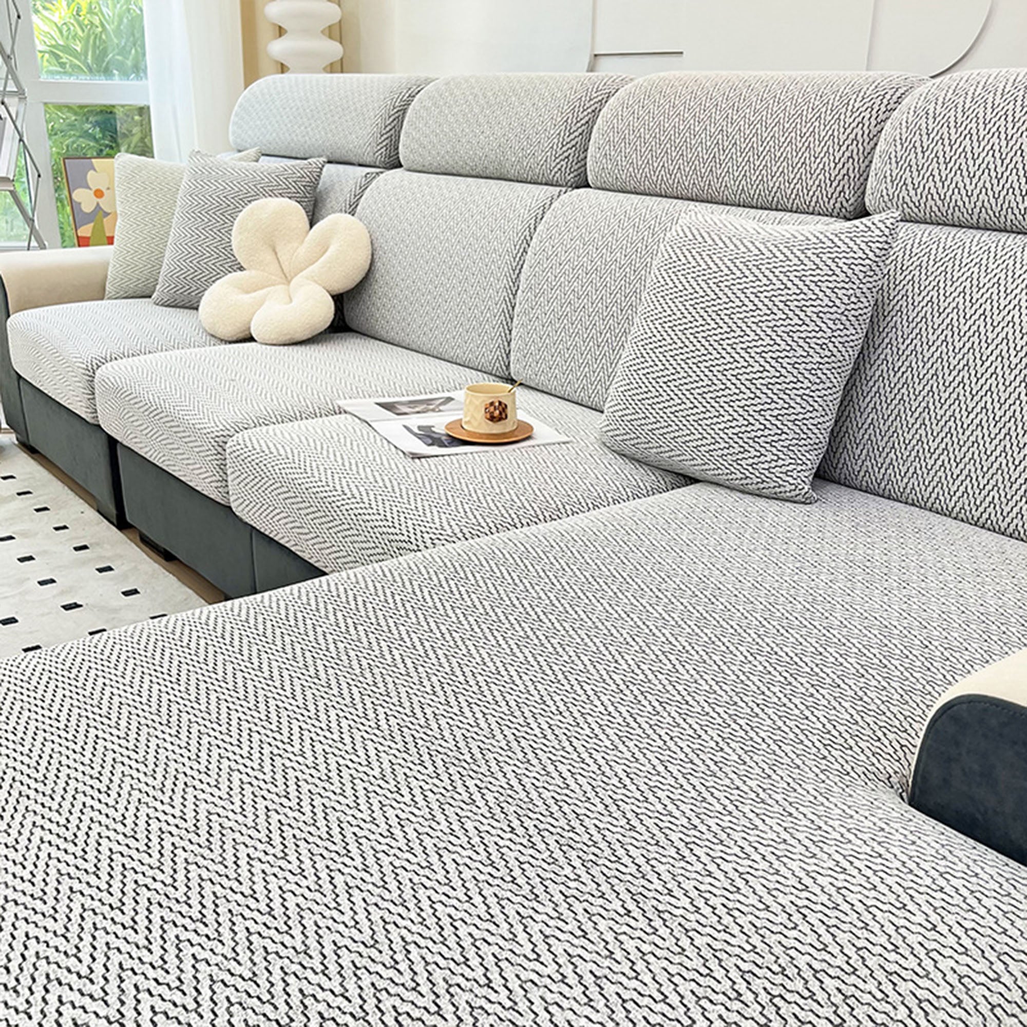 Elegant Chevron Jacquard All-Season Stretch Sofa Cover – Full Wrap, Anti-Slip & Anti-Scratch Protection