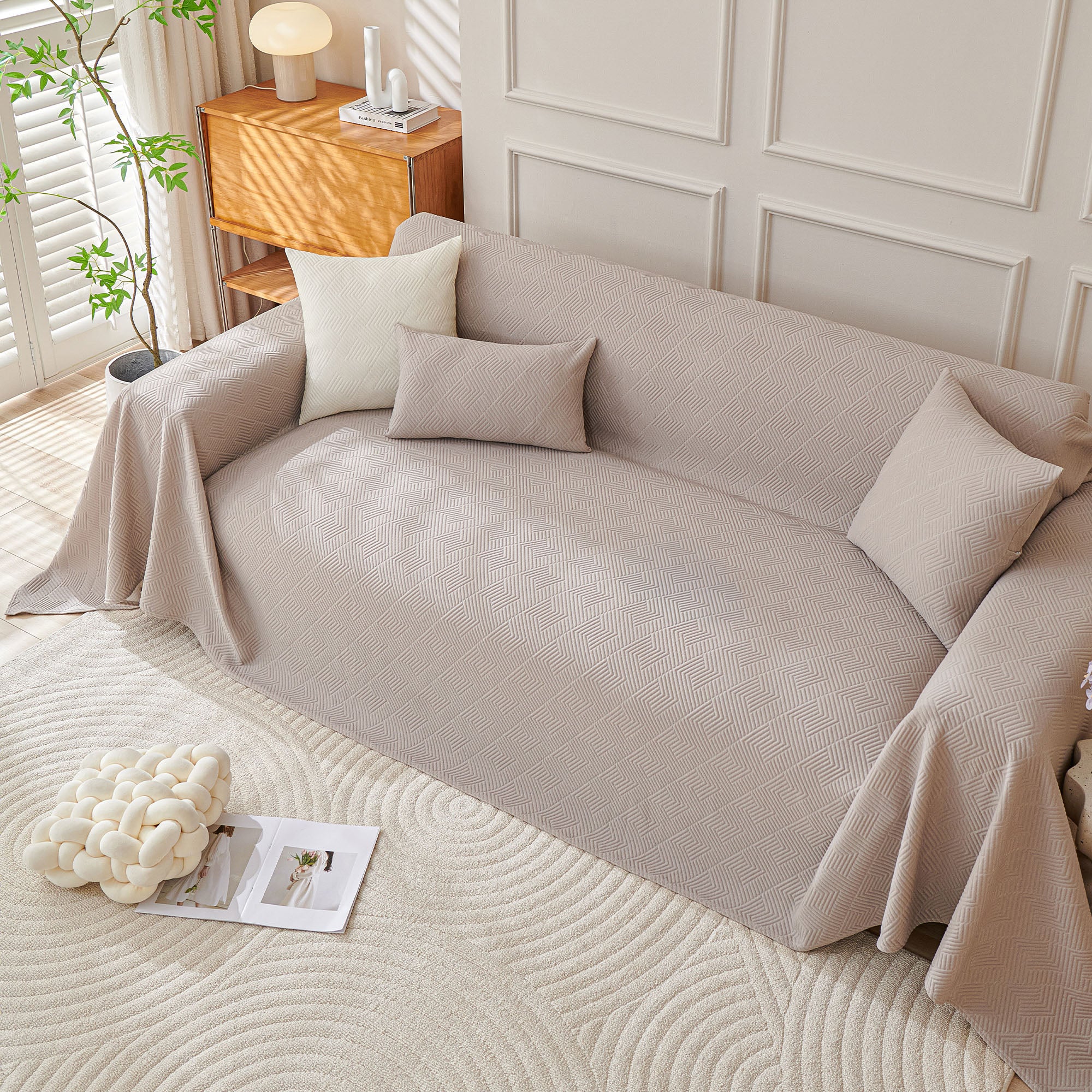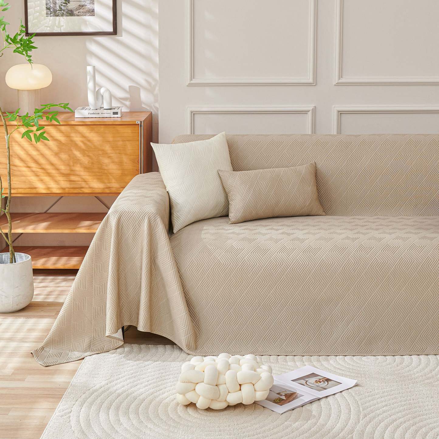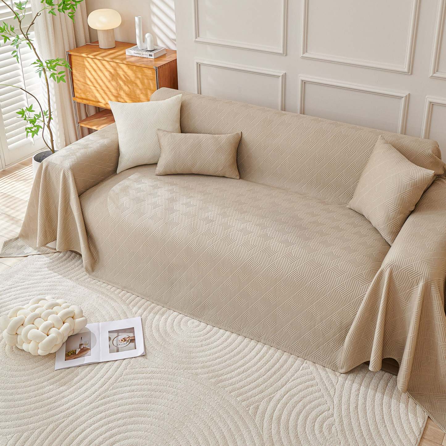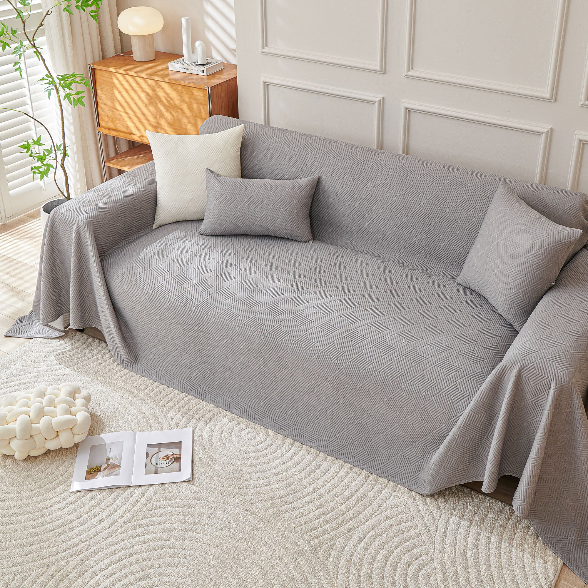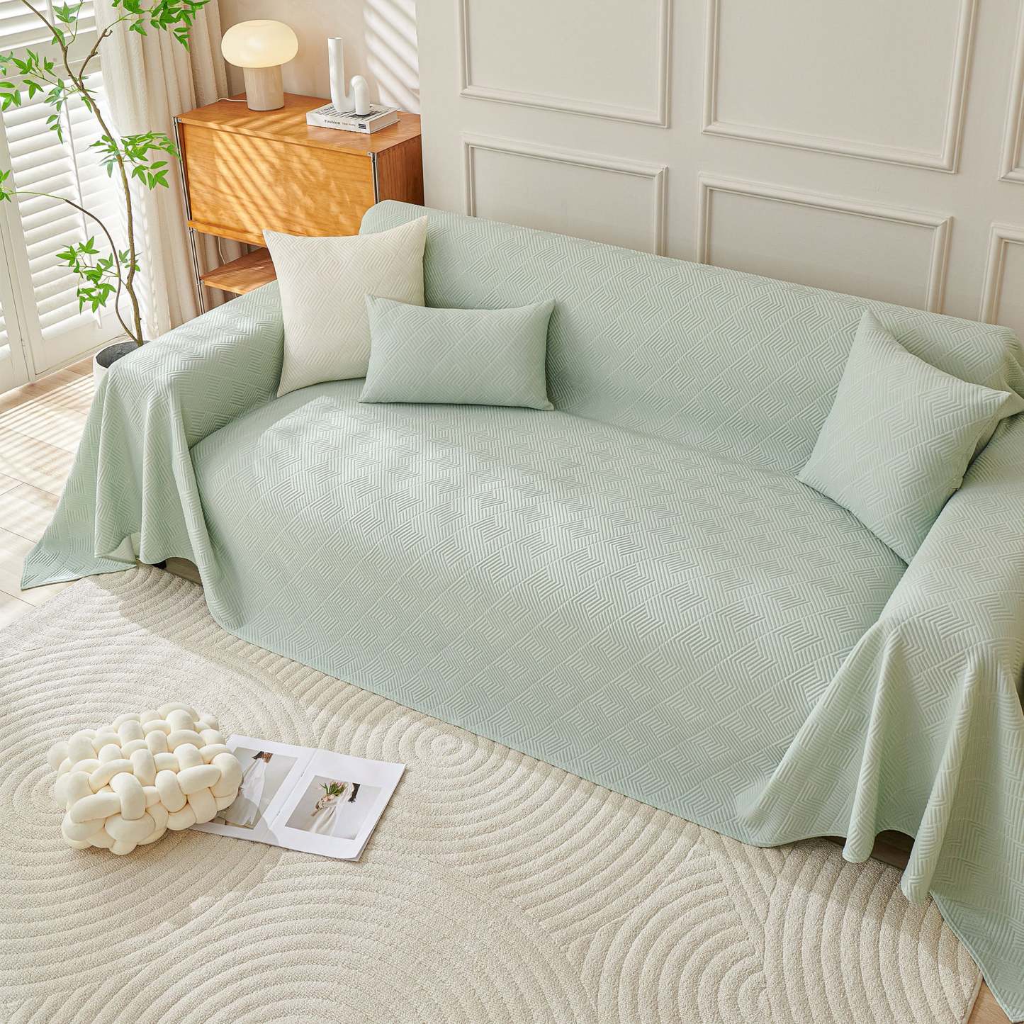 Refresh your sofa with the Cooling Artisan Woven Sofa Cover—perfect for homes full of pets, kids, and nonstop action. It installs in just seconds, wraps your couch in full 360° protection, and is machine-washable for effortless cleanup. Stylish, durable, and cool to the touch, it’s a smart, budget-friendly way to update your space with playful practicality.• Stay chill with high-tech cooling fabric that keeps things fresh and comfy year-round.• Wraps your sofa in full 360° coverage—on in just 10 seconds, no fuss.• Pet-approved and mess-friendly: toss it in the wash for easy, stress-free cleanups.• Available in a range of sizes with soft, eye-catching patterns to match any vibe.• Not just for sofas—style it as a funky rug, playful tablecloth, unique furniture throw, or picnic-ready blanket.