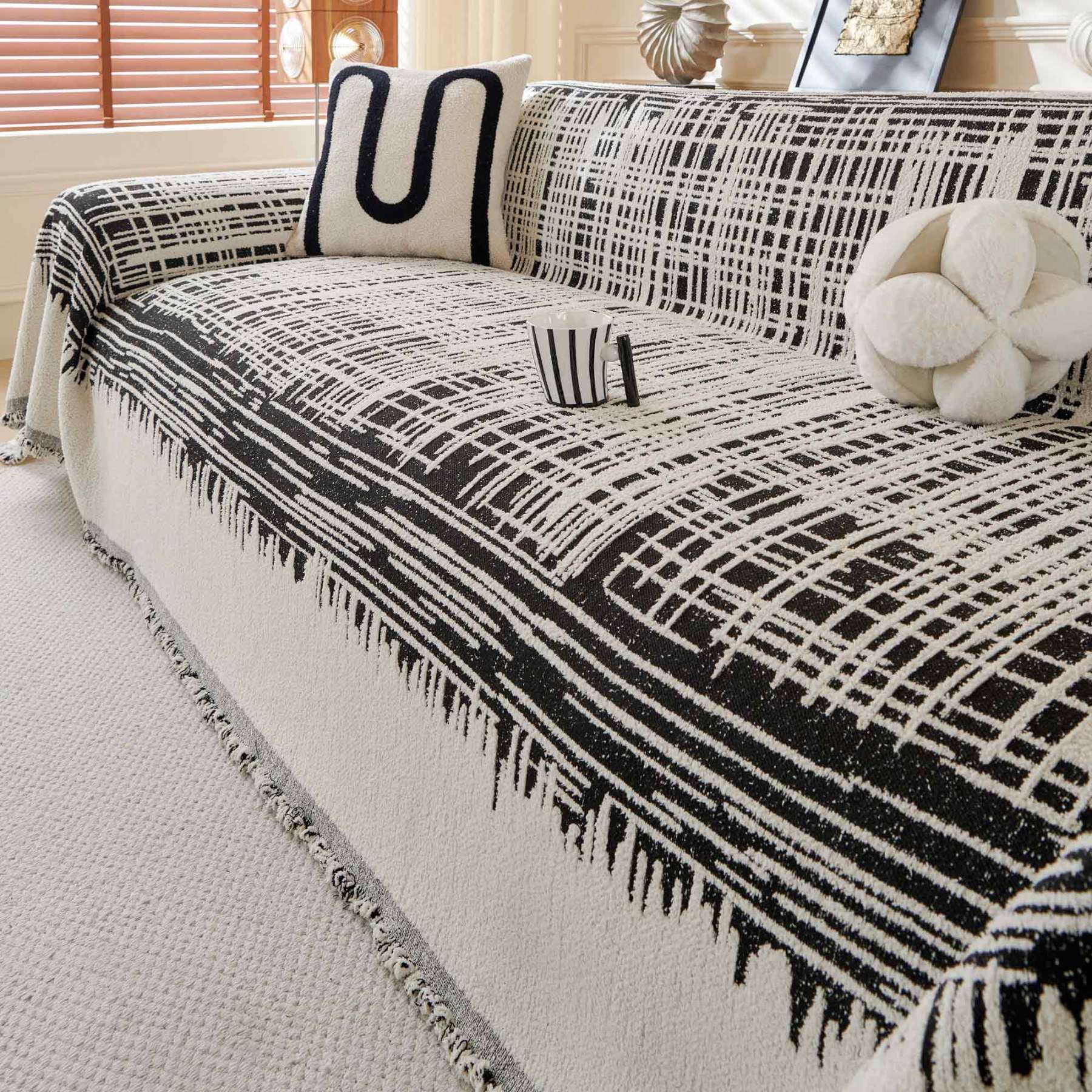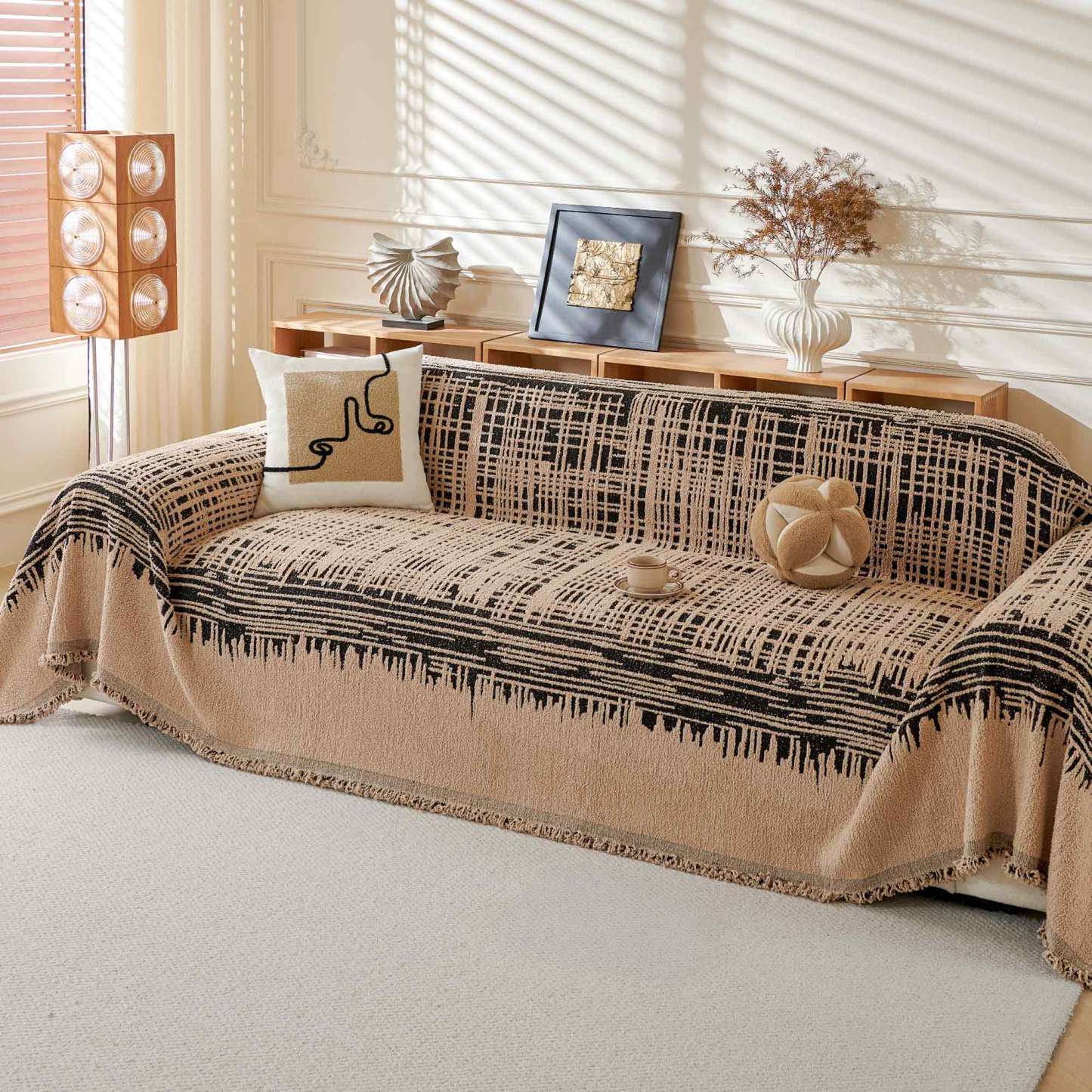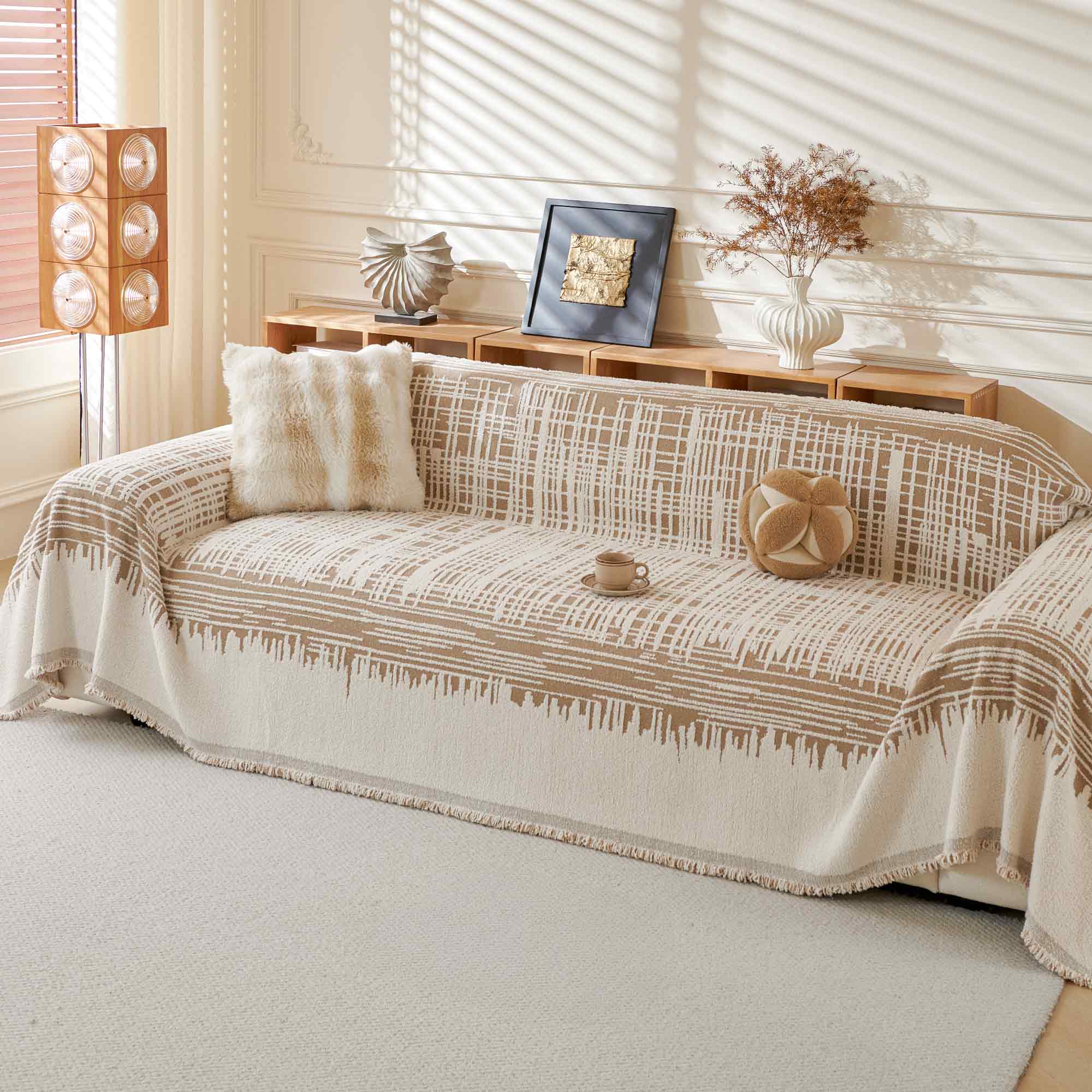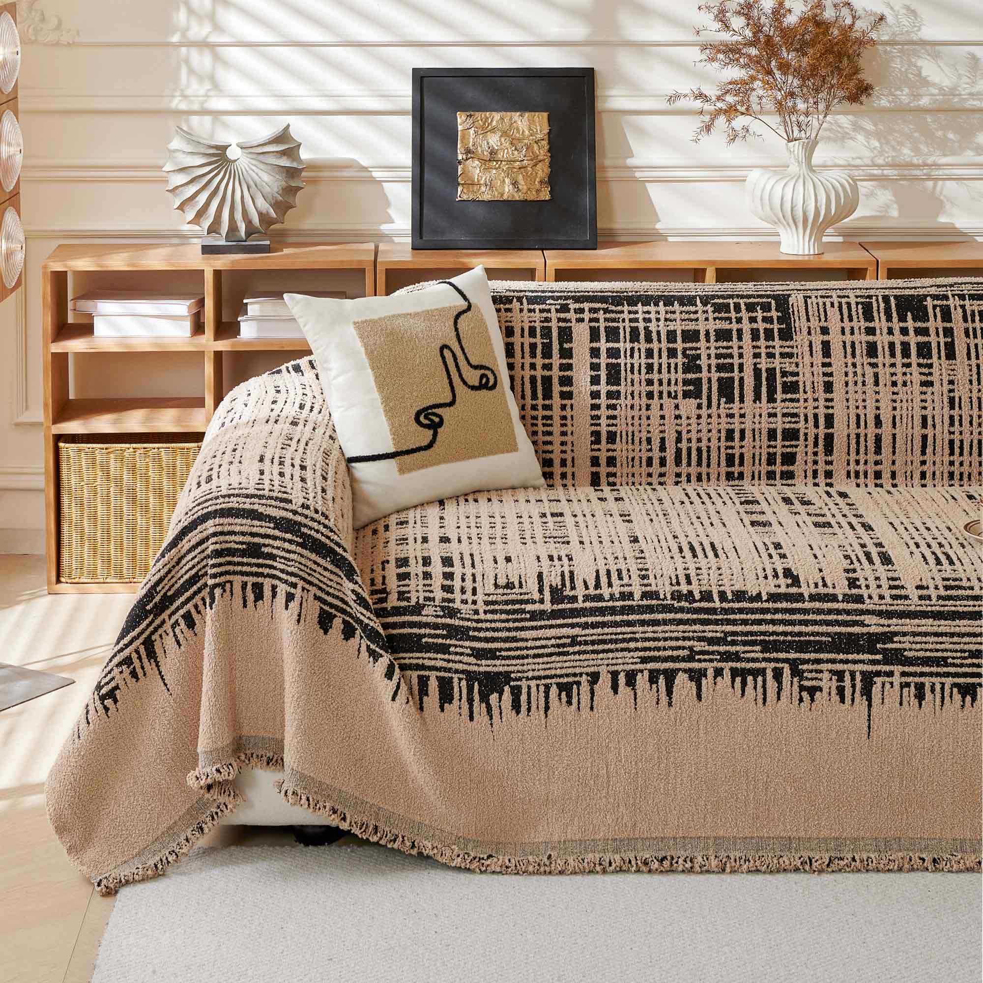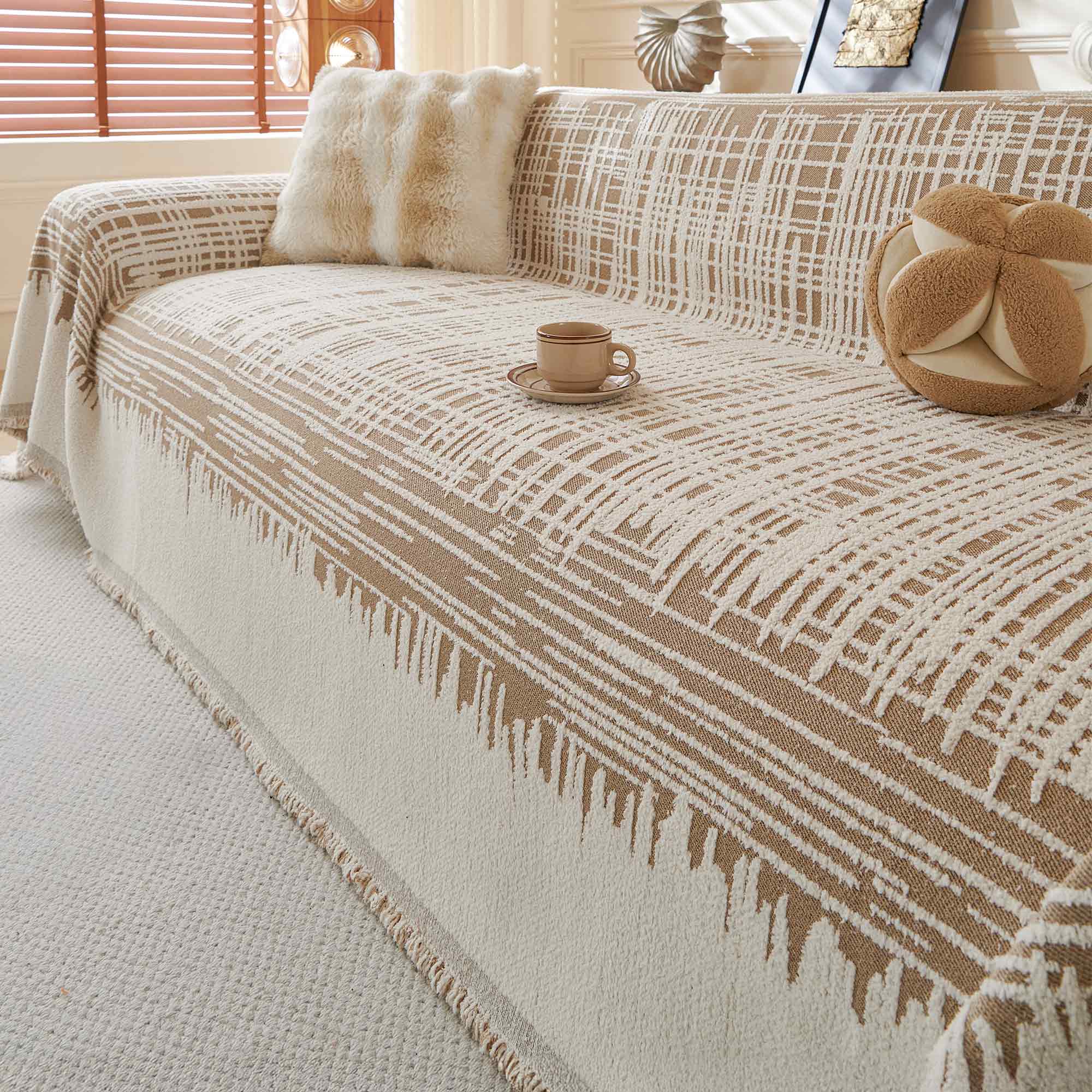 Bold Urban Gridlines Earth Tone Pattern Soft Pet-Friendly Durable Sofa Cover – Minimalist Hassle-Free Throw Couch Protection Multi-Use
