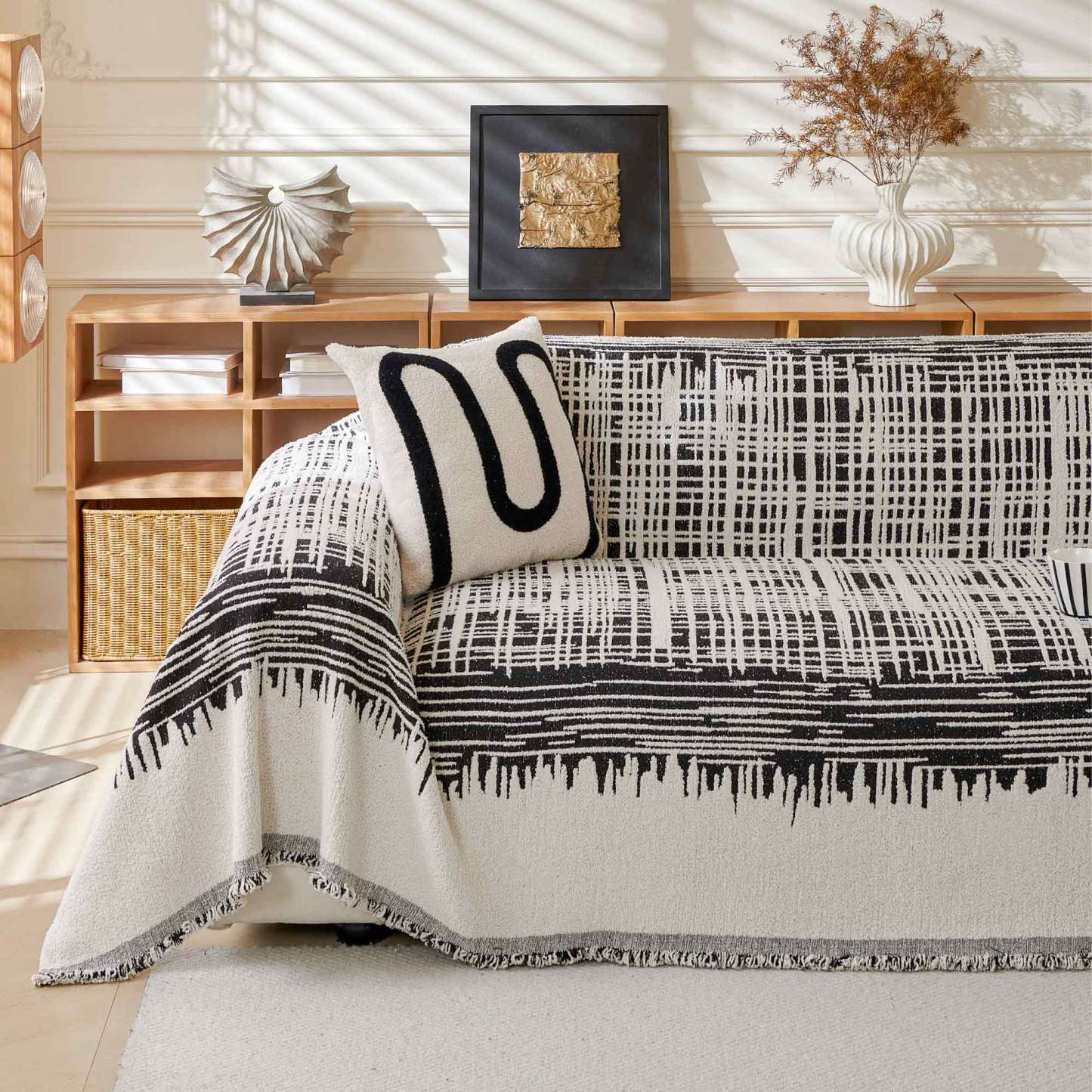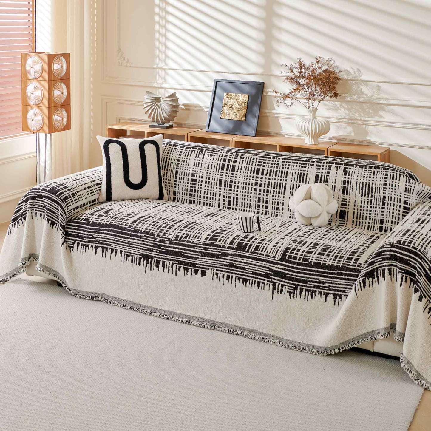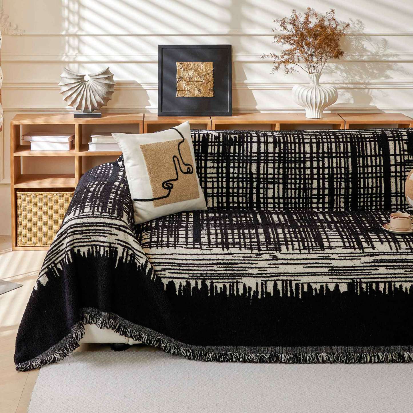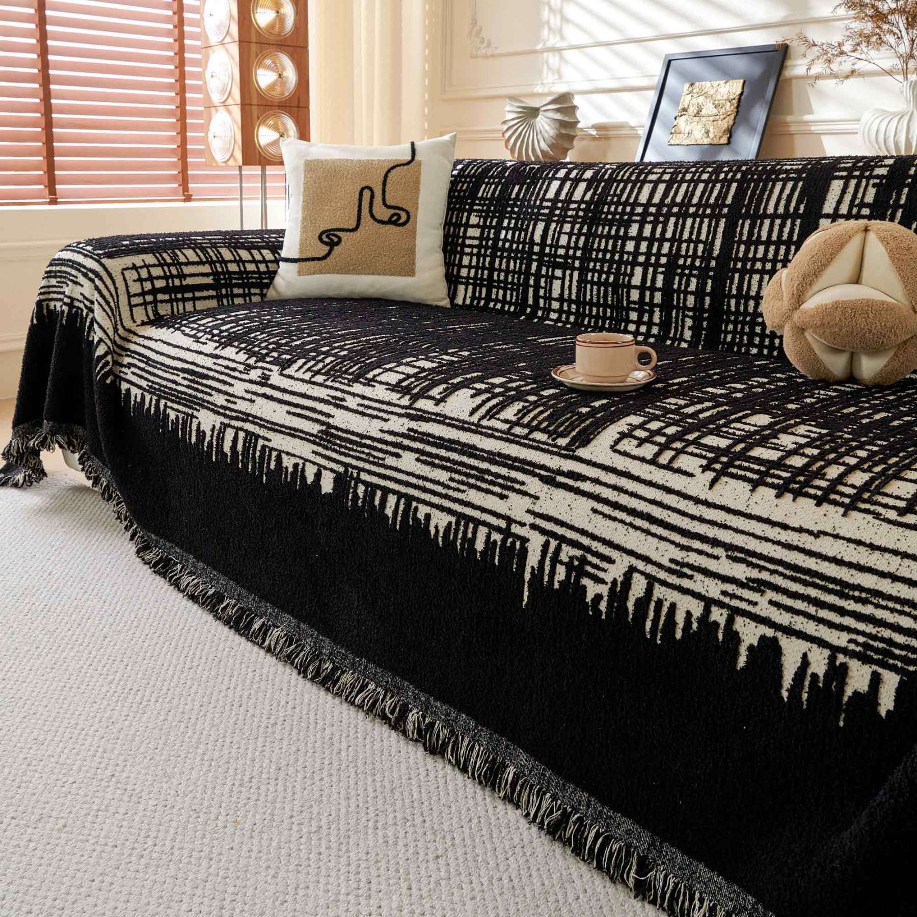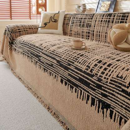 Bold Urban Gridlines Earth Tone Pattern Soft Pet-Friendly Durable Sofa Cover – Minimalist Hassle-Free Throw Couch Protection Multi-Use