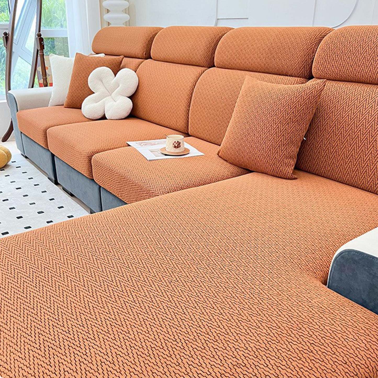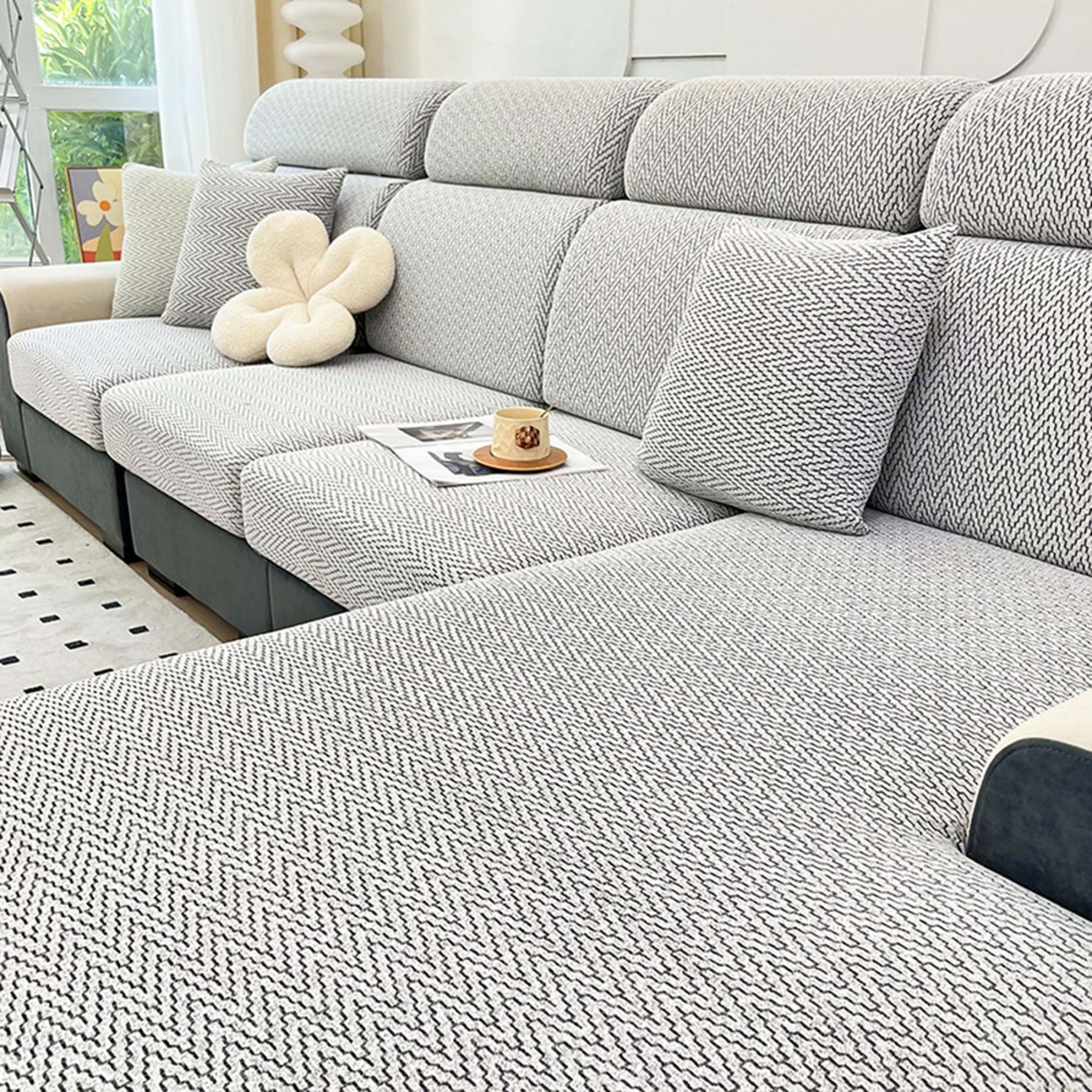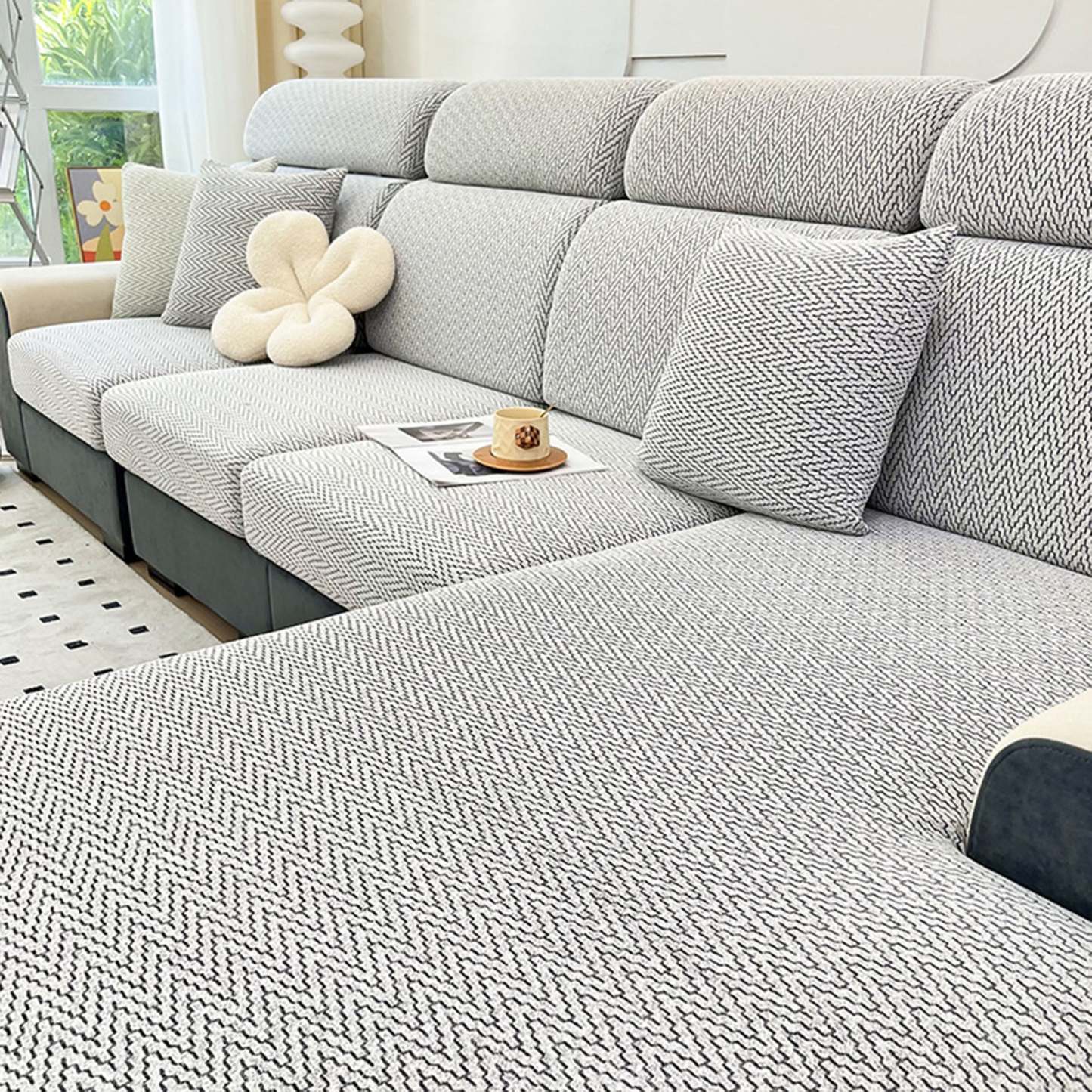 Protect and refresh your sofa with our UltraGrip Chevron Jacquard Stretch Sofa Cover. Crafted with premium jacquard knitting, the subtle chevron texture and clean lines create a refined, sculpted look while delivering all-around protection. The high-elastic fabric hugs every curve for a custom fit, and a dual anti-slip system keeps the cover steady—sit, lounge, or jump, it stays put. Tough yet soft, it resists daily wear and cat scratches so you spend less time tidying and more time relaxing.• Premium jacquard weave: dense, durable, and beautifully textured • Dual non-slip hold: stretchy wrap + textured backside for a stay-put fit • 360° full coverage: shields seats, arms, and back from fur and messes • Scratch-resistant fabric: helps deter claw snags and abrasion • Comfortable & skin-friendly: soft handfeel for everyday lounging • Easy on, easy off: slip on, pull tight—instant living-room upgrade • Machine washable: no fading, no shrinking, built for long-lasting use