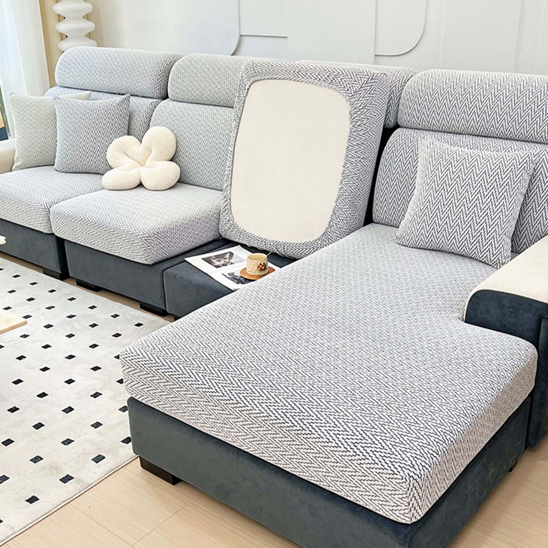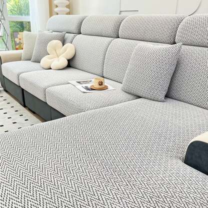 Elegant Chevron Jacquard All-Season Stretch Sofa Cover – Full Wrap, Anti-Slip & Anti-Scratch Protection