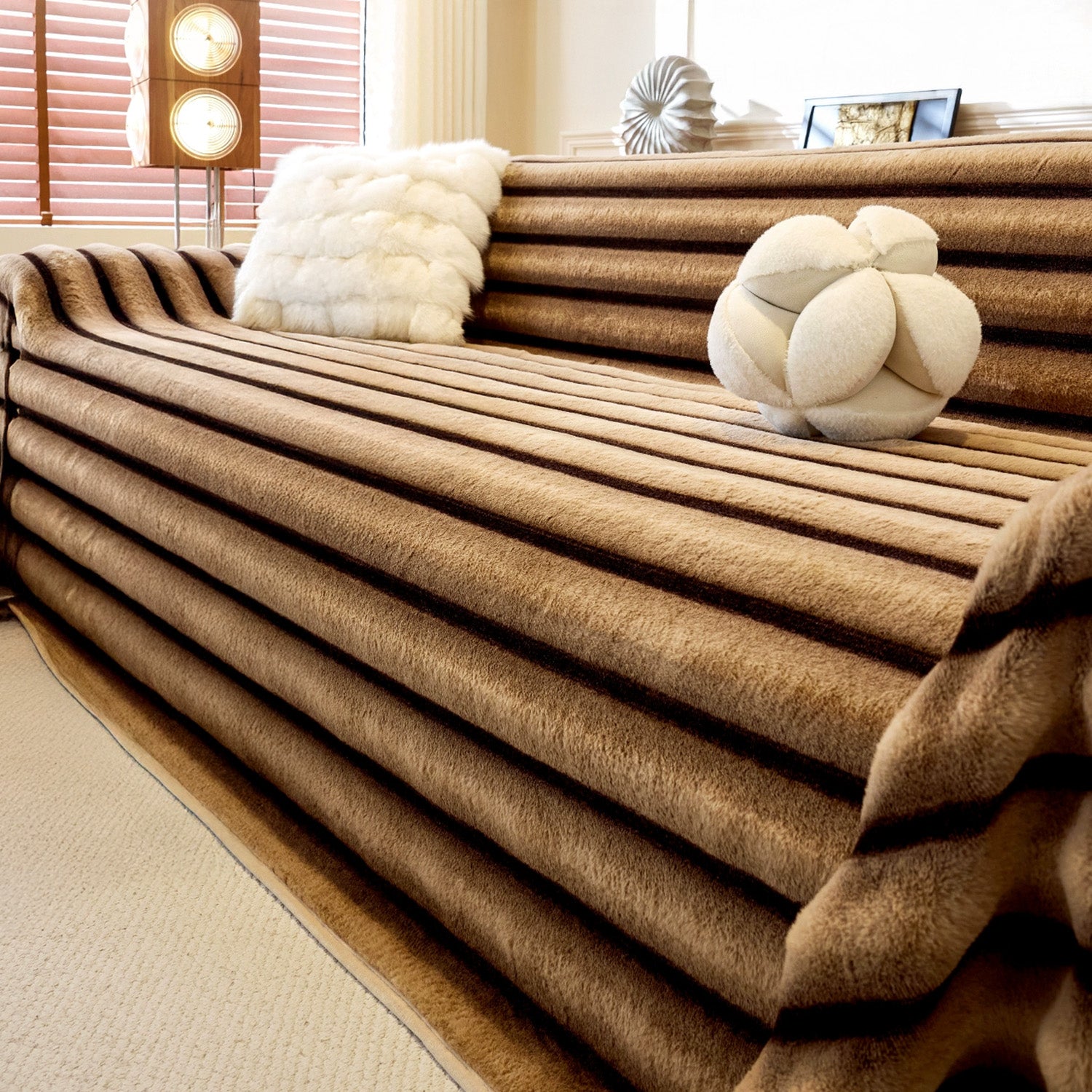 Extra large Luxury Stripe Faux Fur Sofa/Couch Cover
