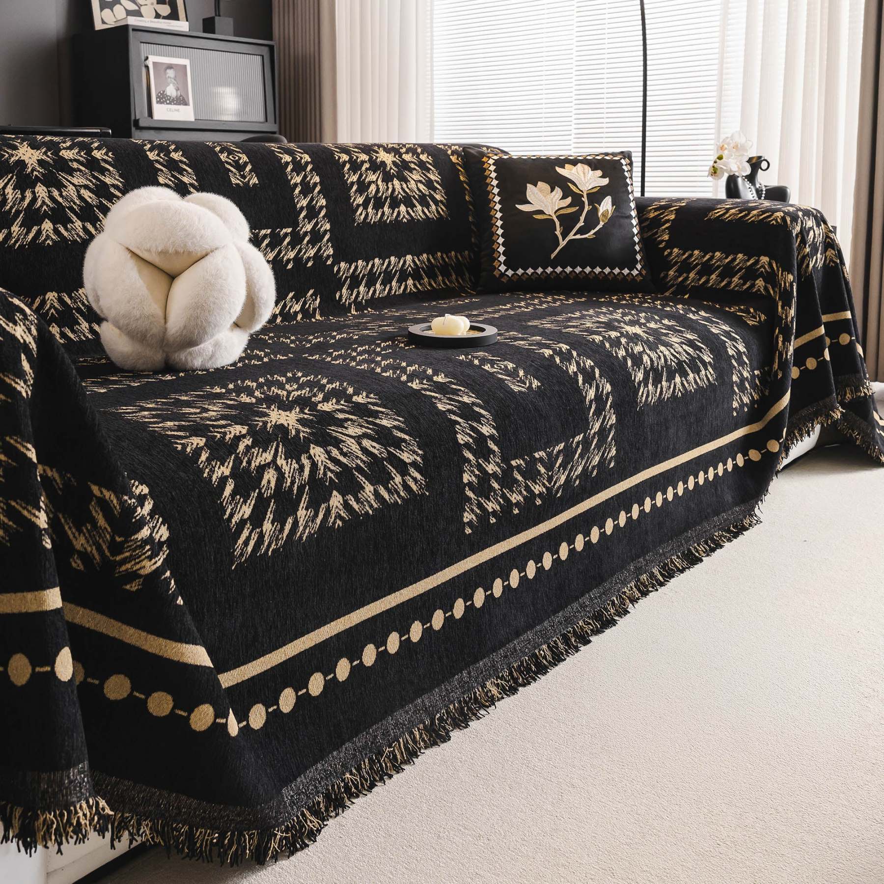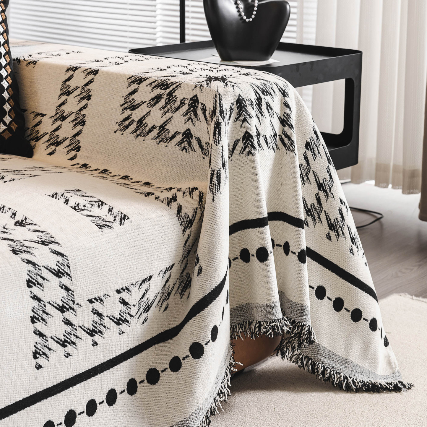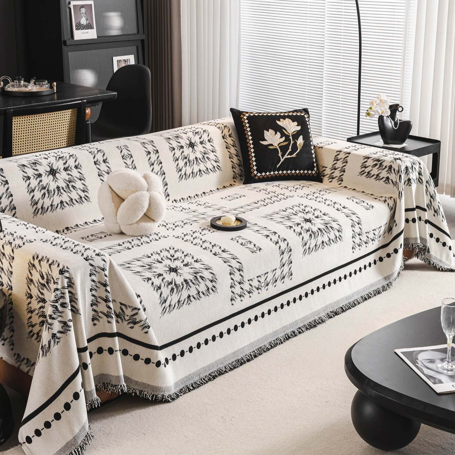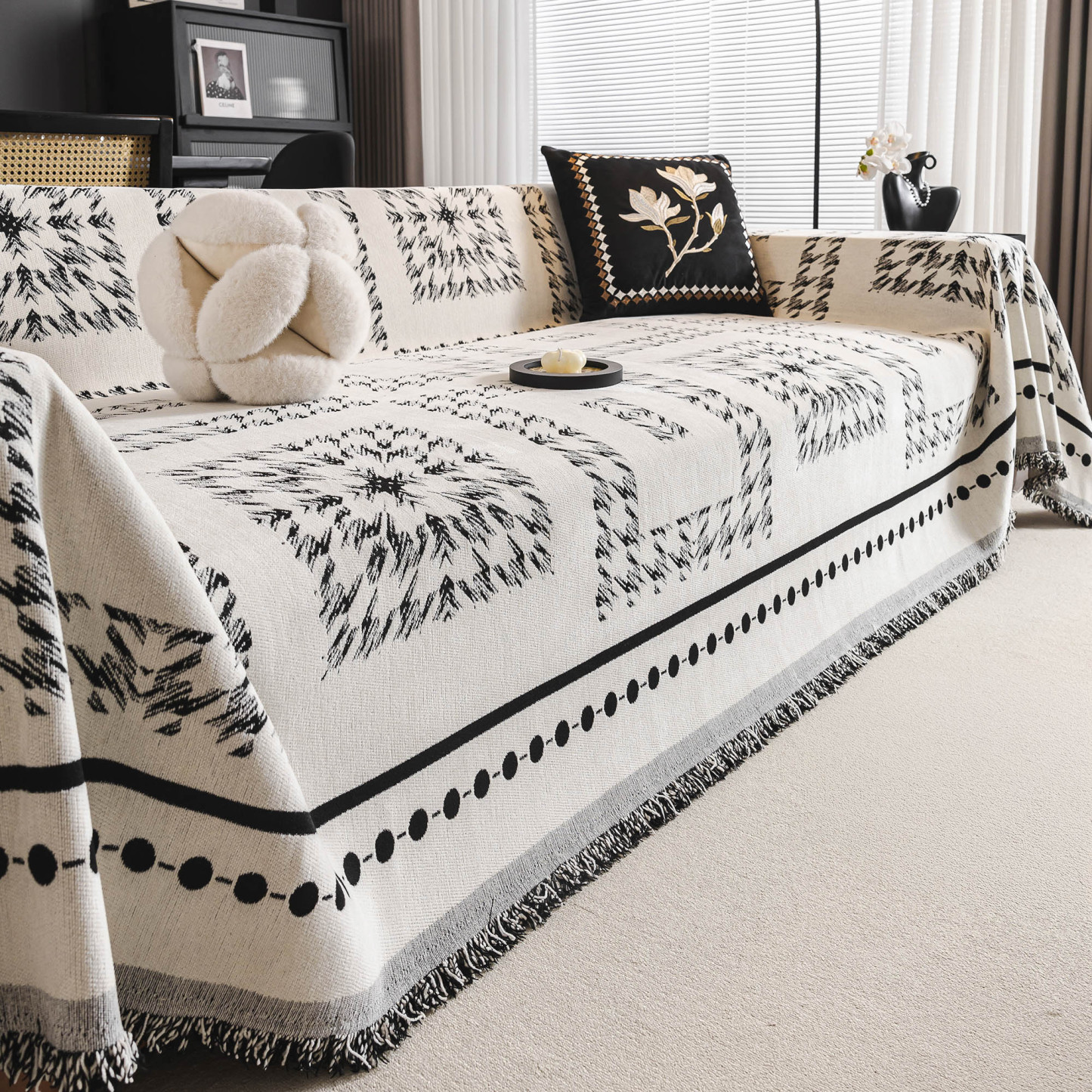 Fringed Boho Chic Monochromatic Multi-Purpose Chenille Couch Cover Soft Sofa Protection for a Hassle-Free Home