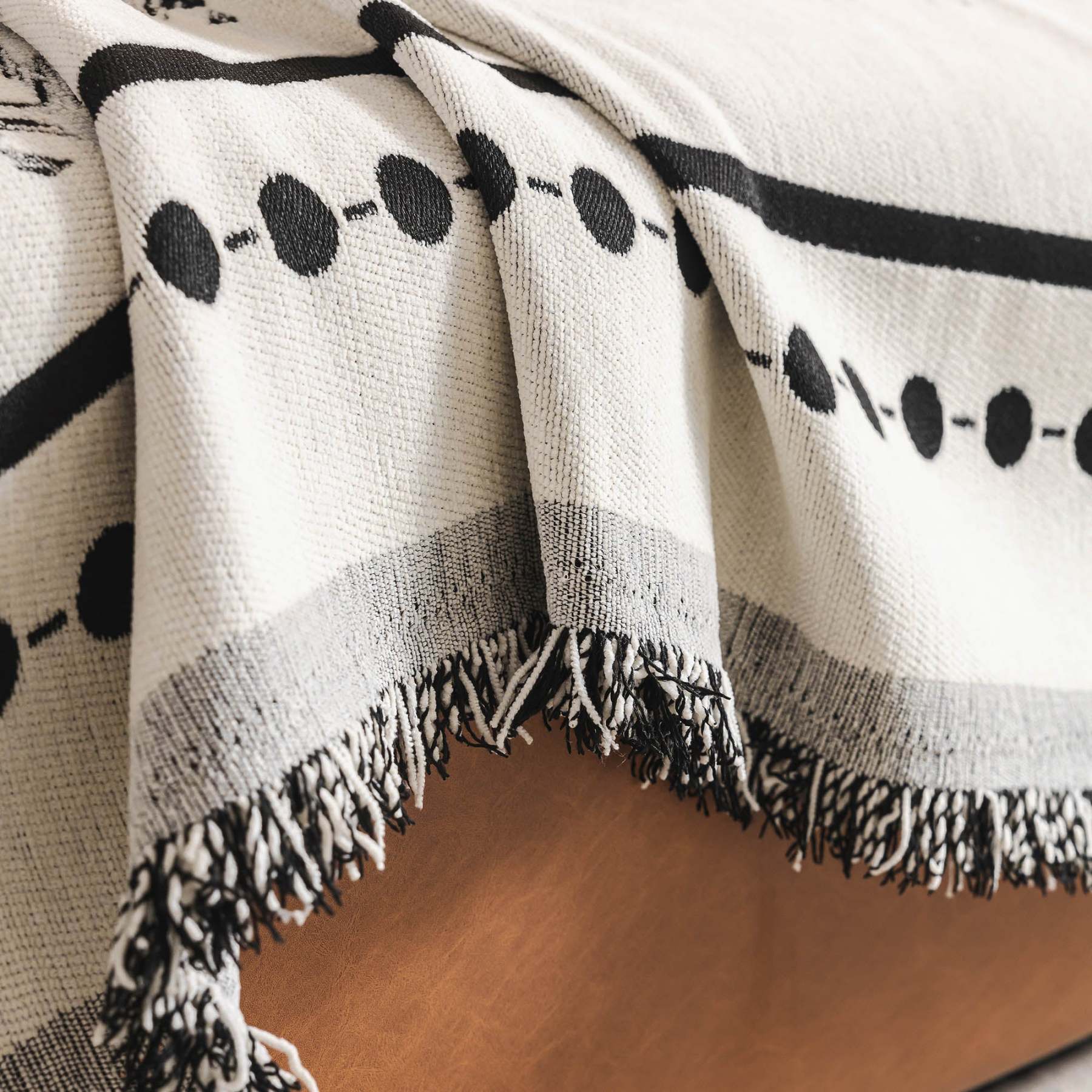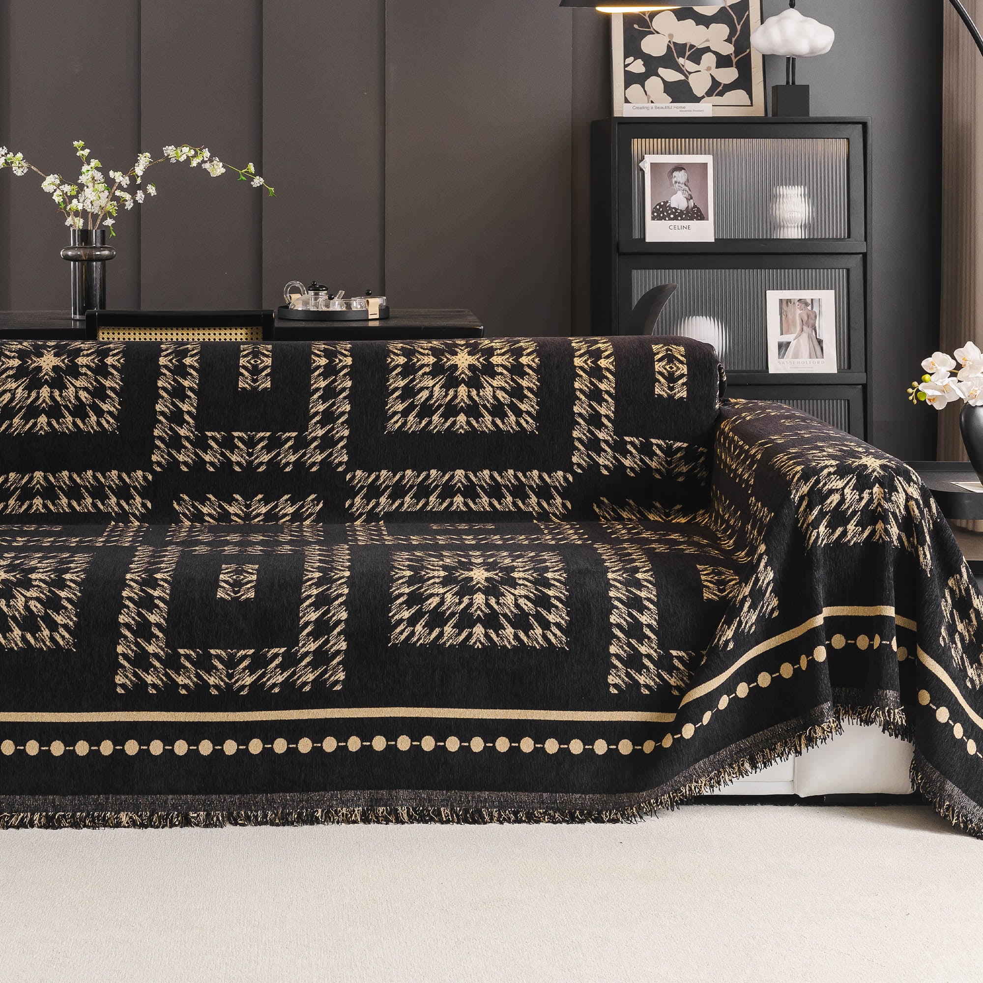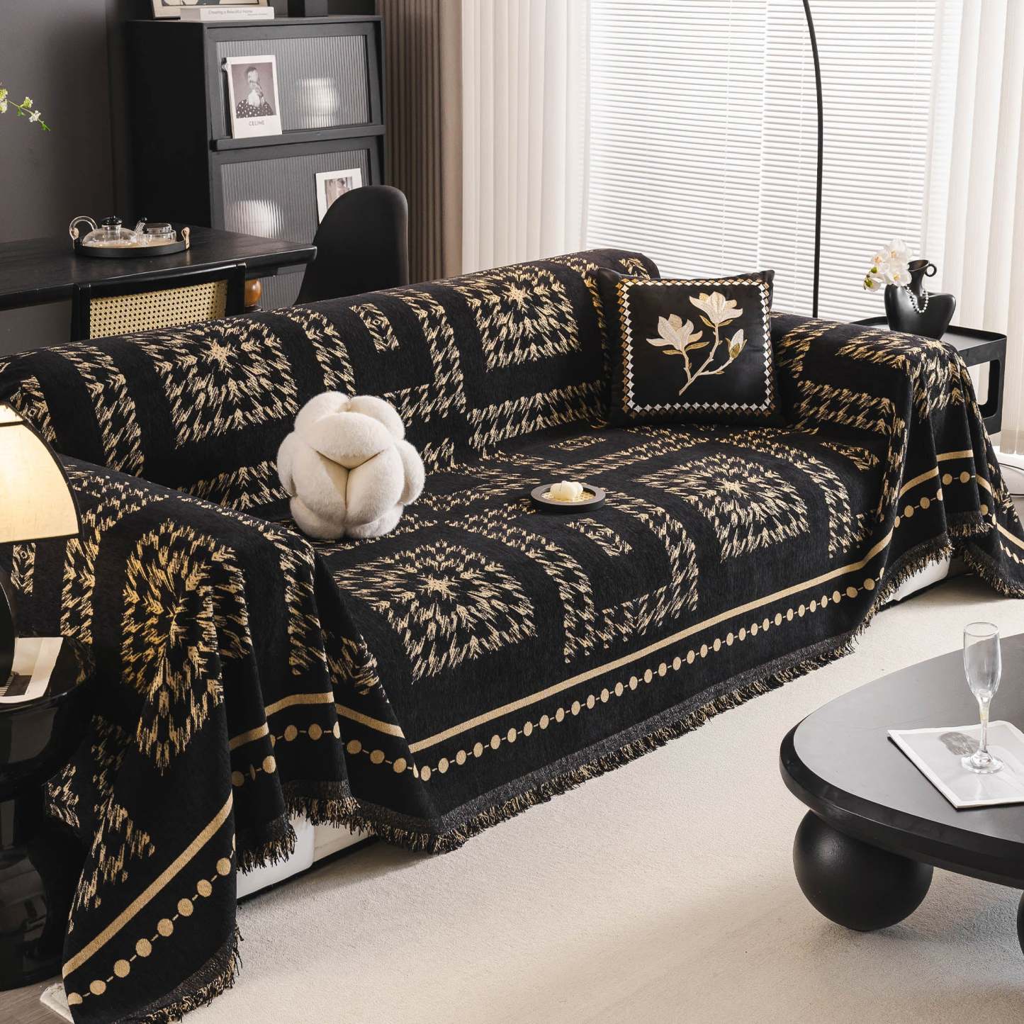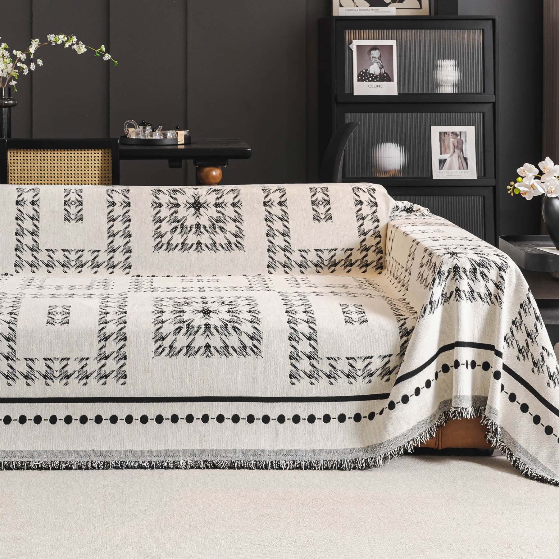 Fringed Boho Chic Monochromatic Multi-Purpose Chenille Couch Cover Soft Sofa Protection for a Hassle-Free Home
