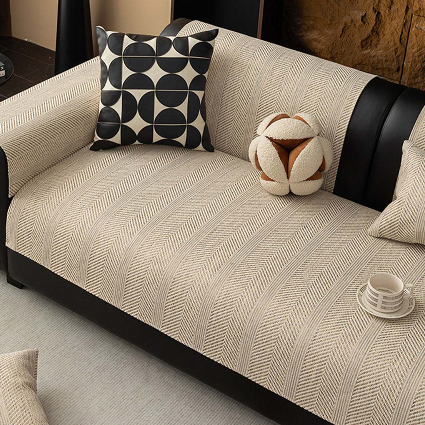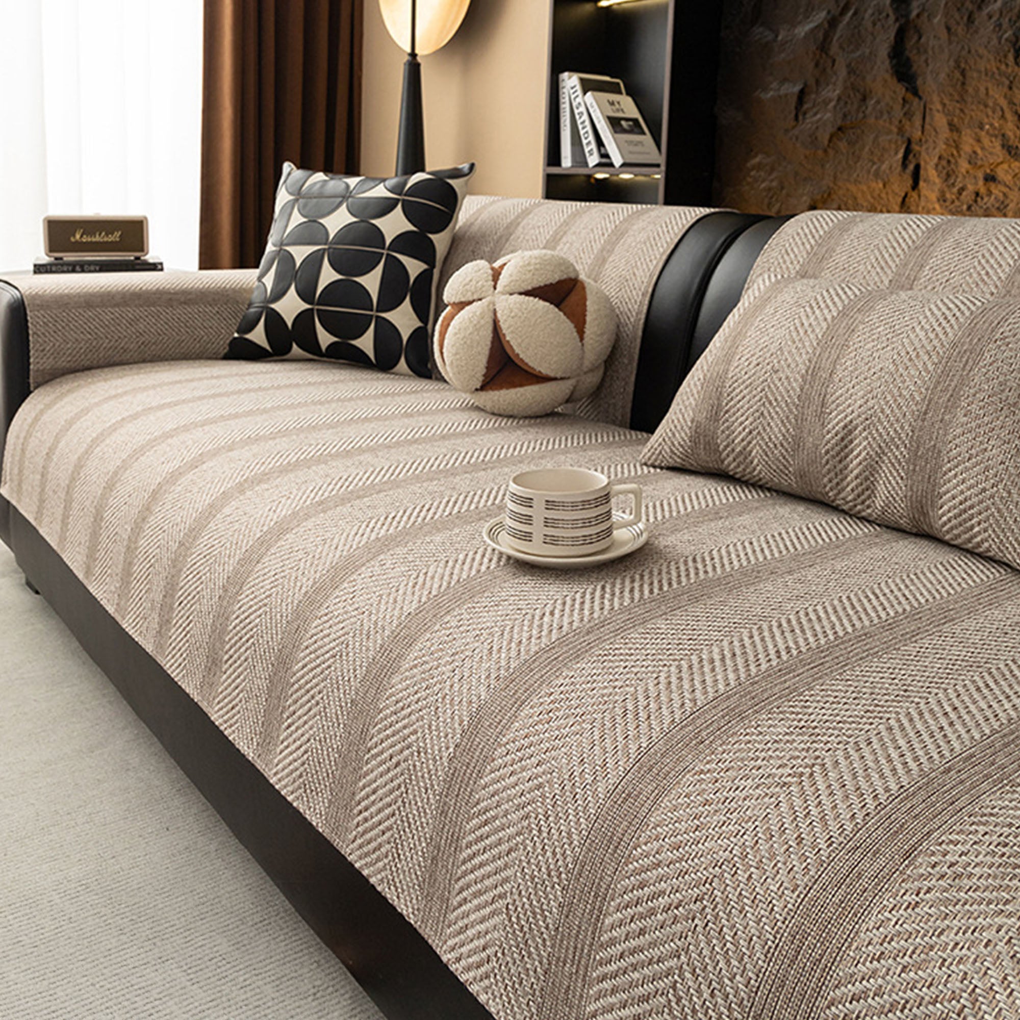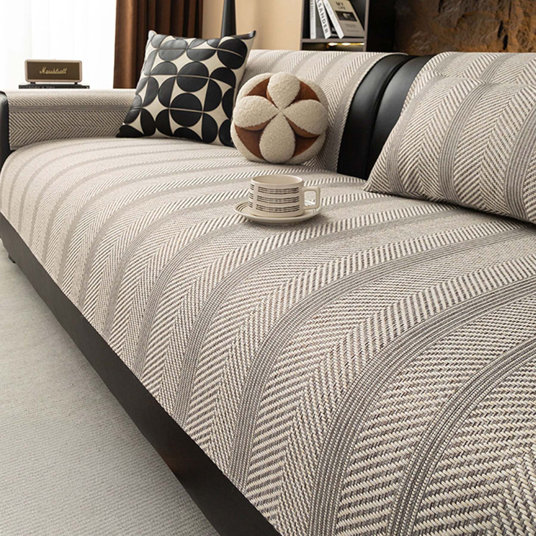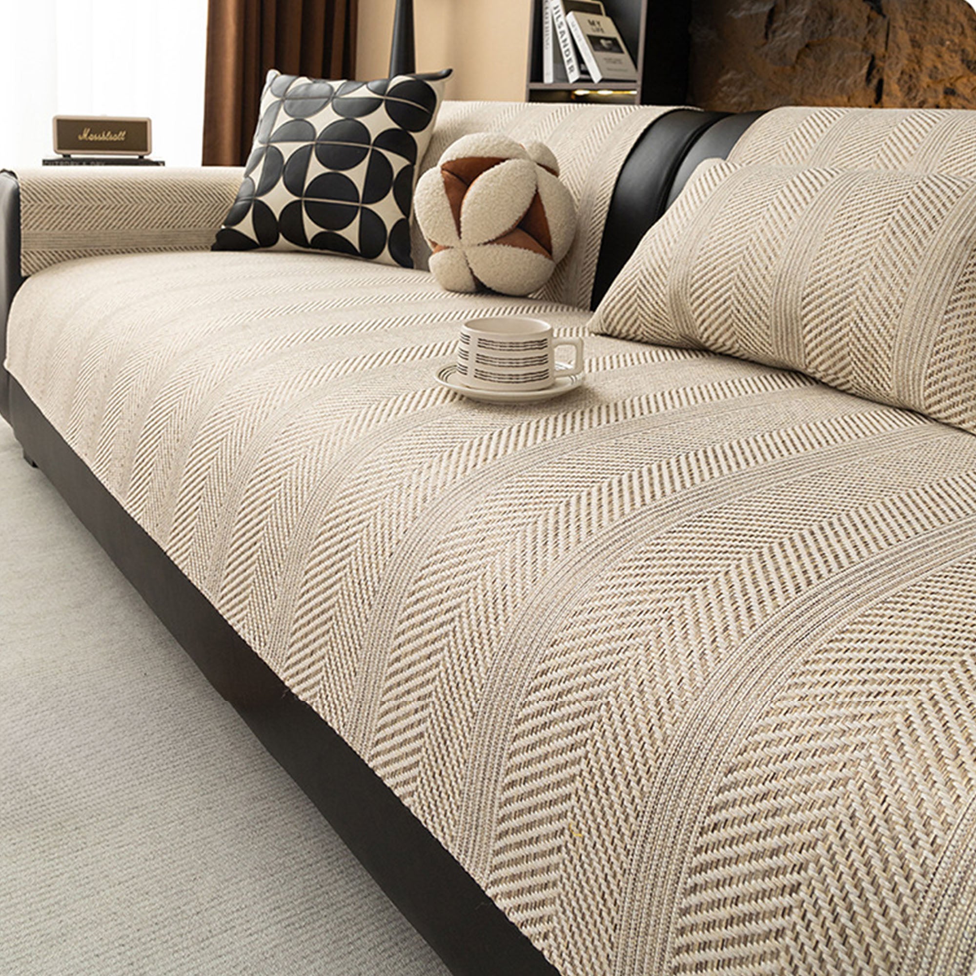 Modern Herringbone Faux-Linen Nonslip Sofa/Couch Cover