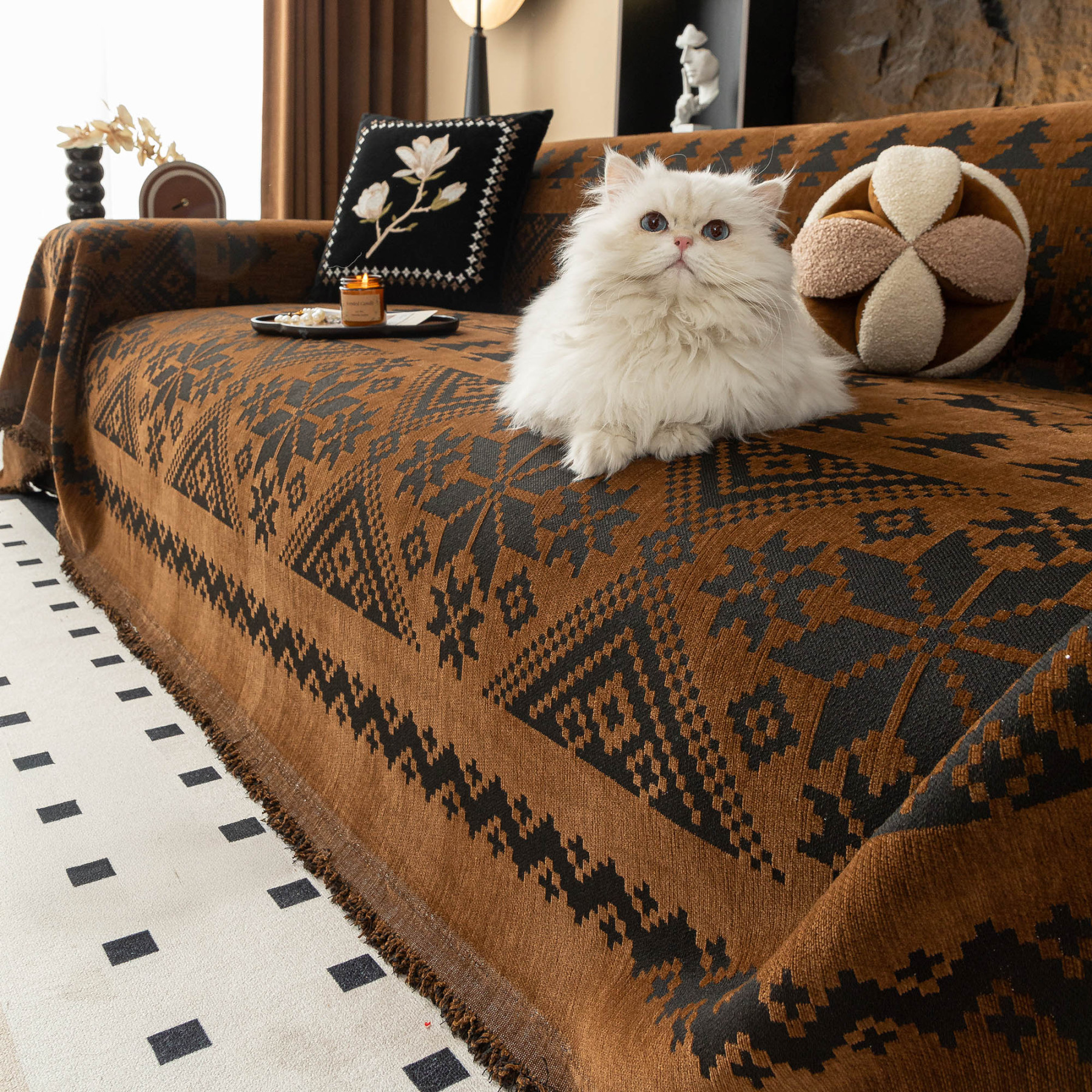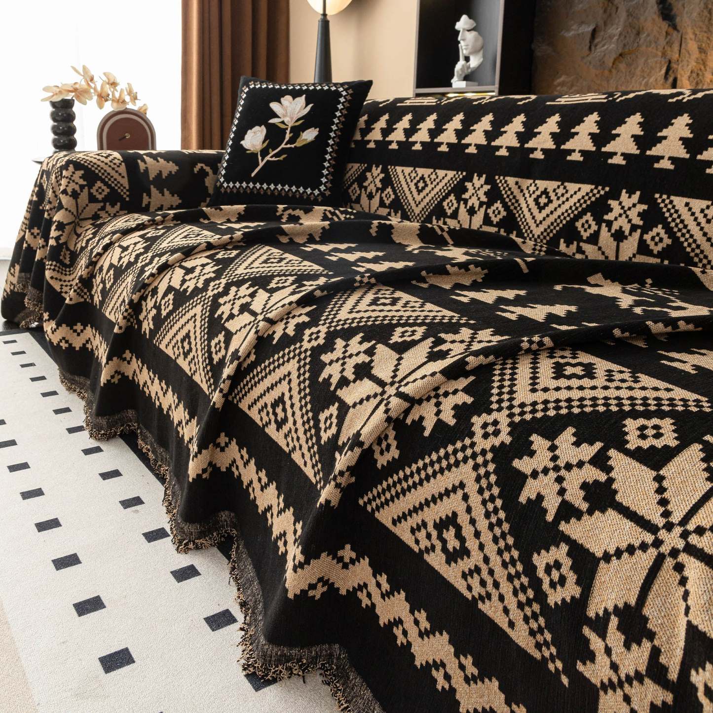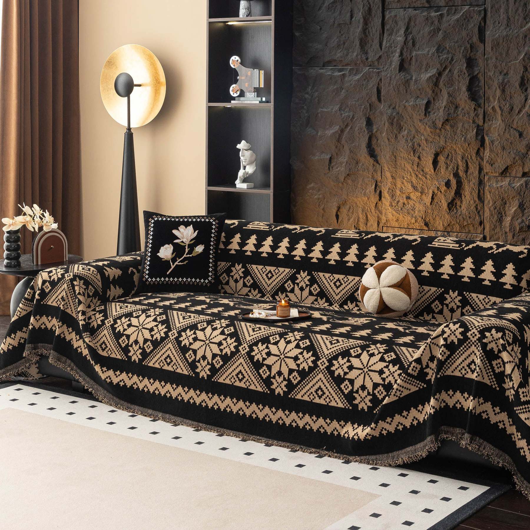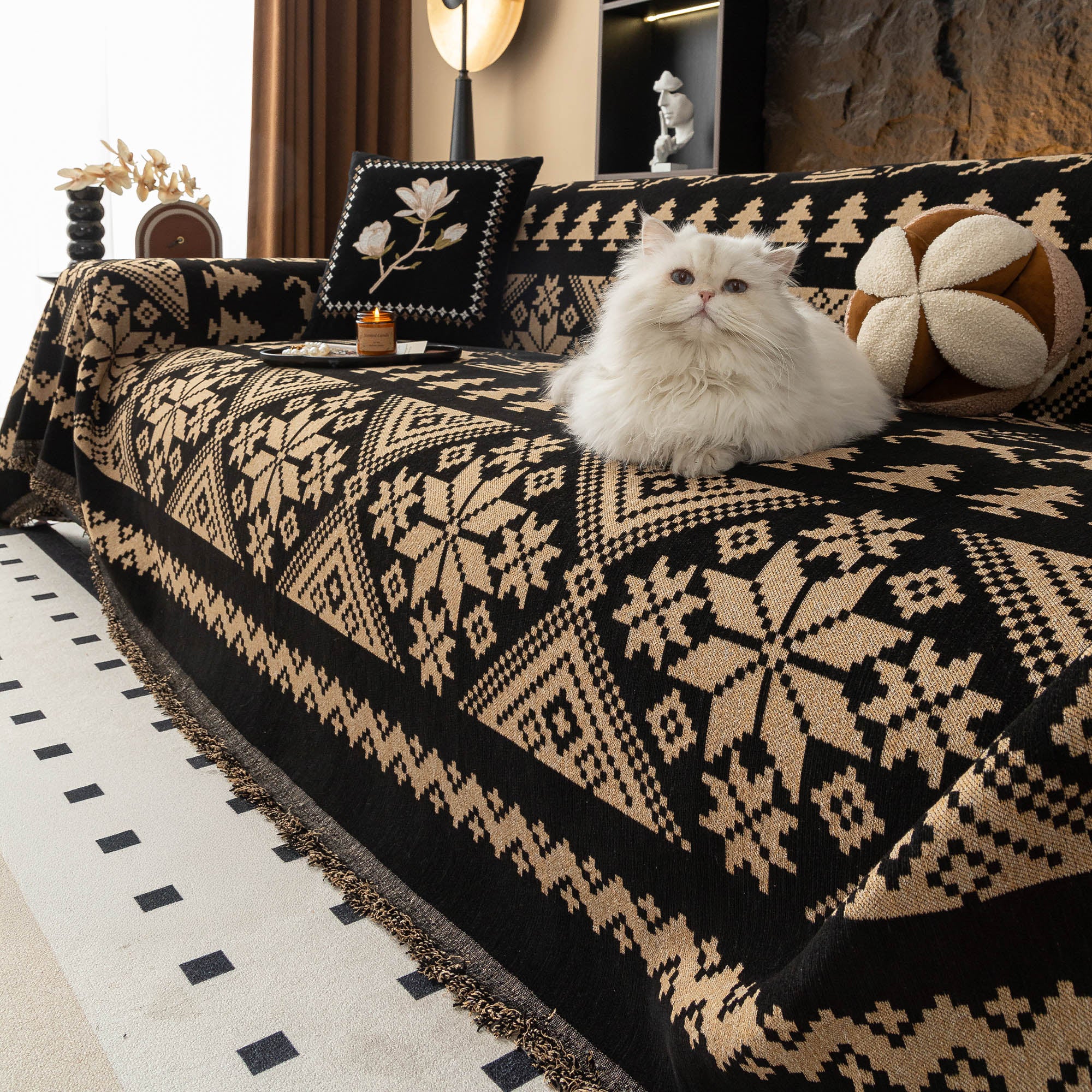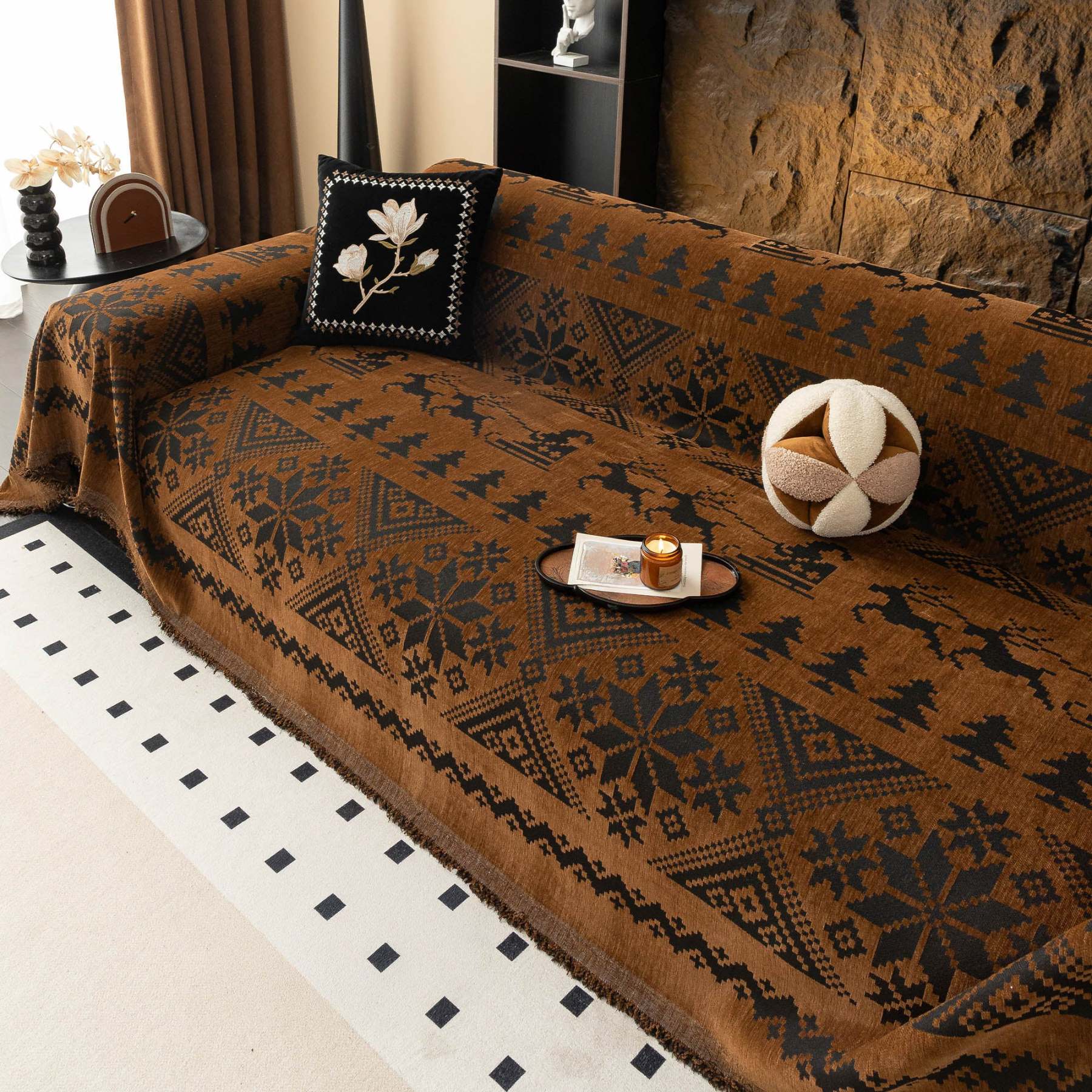 Add a touch of Scandinavian charm and comfort to your living space with our Nordic Winter Knit Couch Cover. With its soft, breathable fabric and delicate ruffle detailing, this cover brings cozy character and timeless style to any room. It’s a beautiful way to keep your sofa looking fresh while adding warmth and personality to your décor. Whether you're curling up with a book, hosting guests, or giving your home a quick style update, this cover delivers the perfect mix of comfort, practicality, and vintage-inspired flair.• Plush chenille fabric that feels irresistibly soft to the touch—while offering the kind of durability that stands up to everyday life.• Designed with everyday protection in mind, it guards against spills, stains, and general wear and tear.• Thanks to its breathable, lightweight design, you’ll enjoy all-season comfort—cozy in the winter, cool in the summer.• Its versatile, stylish look makes it a perfect match for any décor style, whether your space is modern, boho, or traditionally elegant.• Easy to clean—just toss it in the washing machine, and it’s ready to go, looking fresh and clean again in no time.