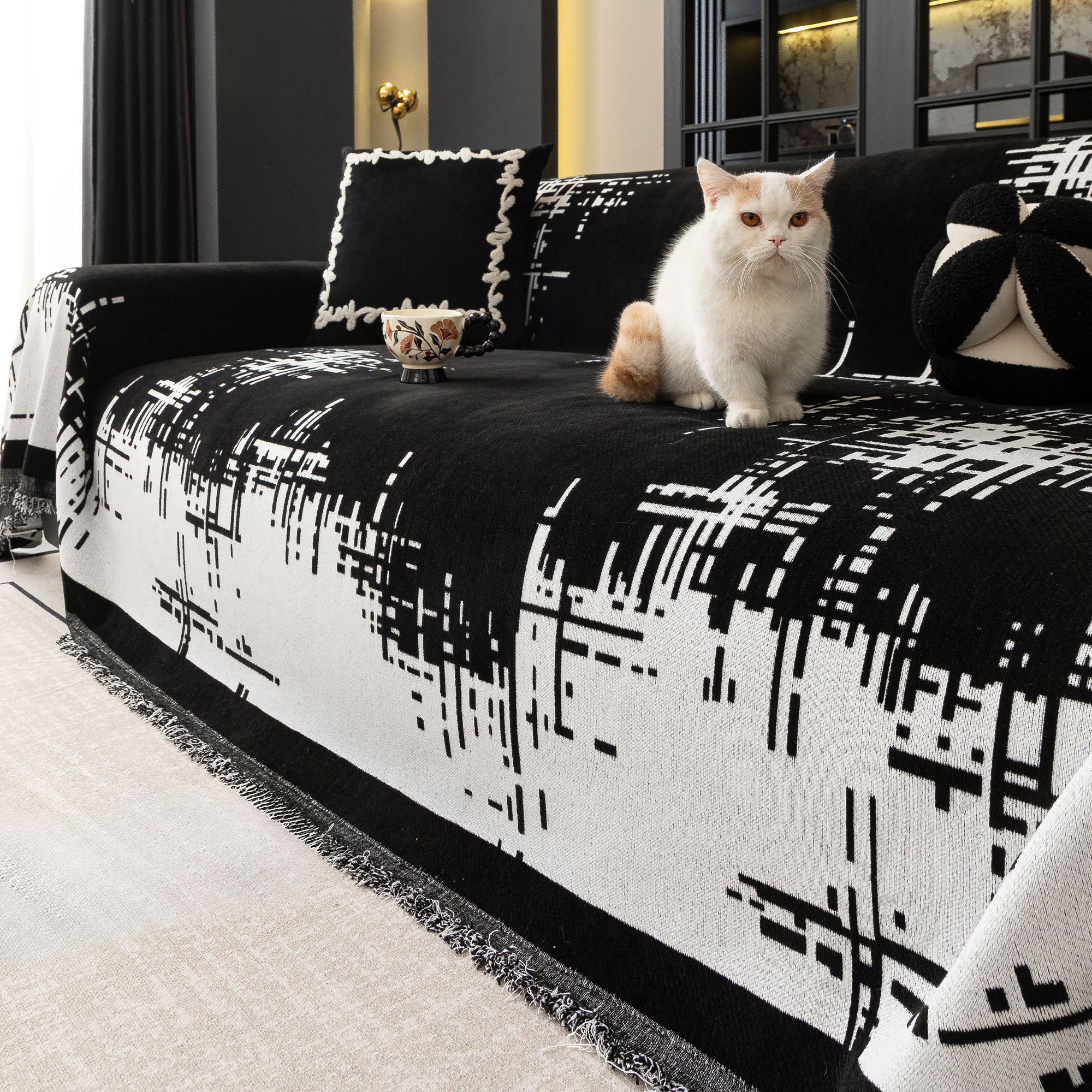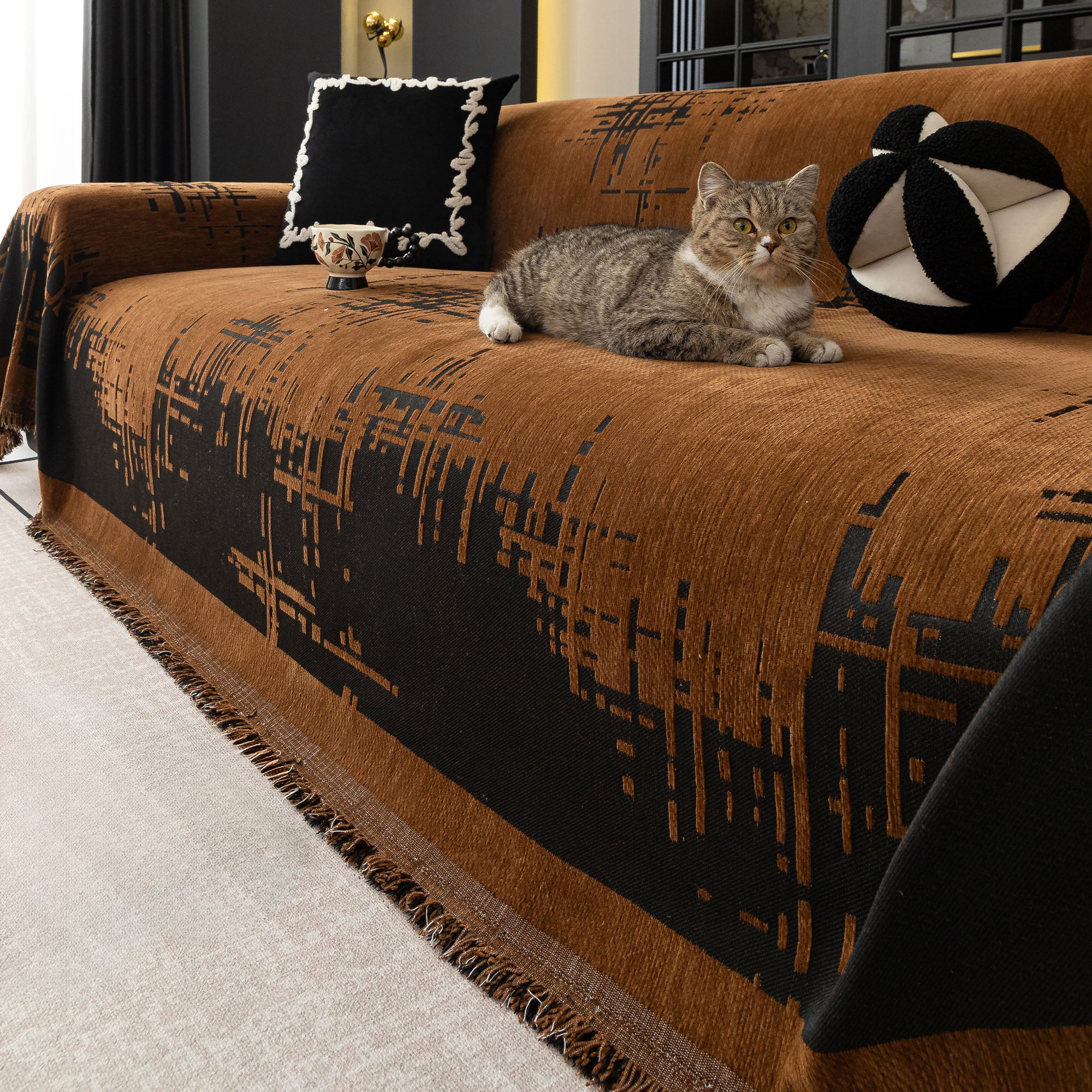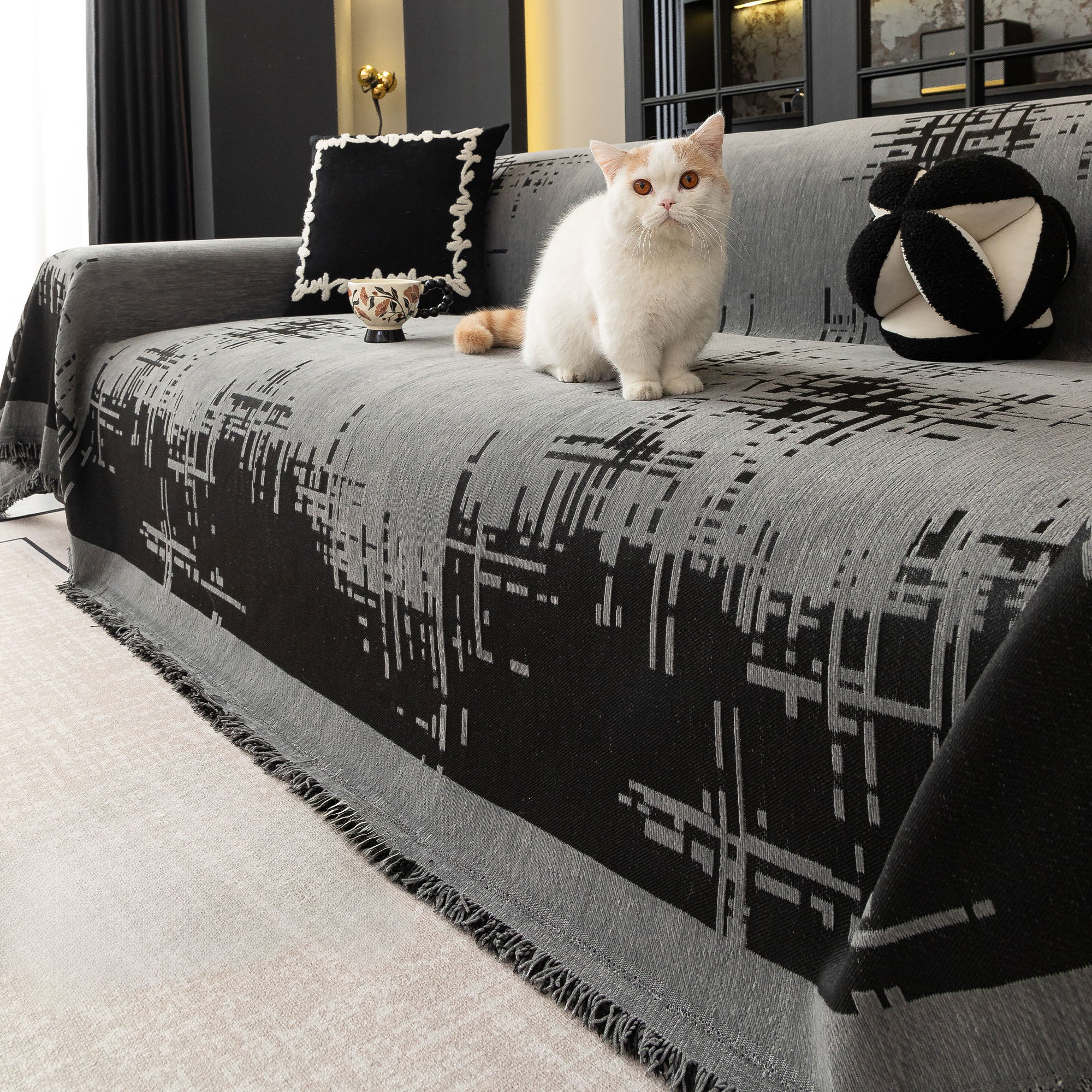 Soft City Plush Pet-Friendly Multi-Purpose Minimalist Sofa Cover – Woven Throw Couch Machine Washable