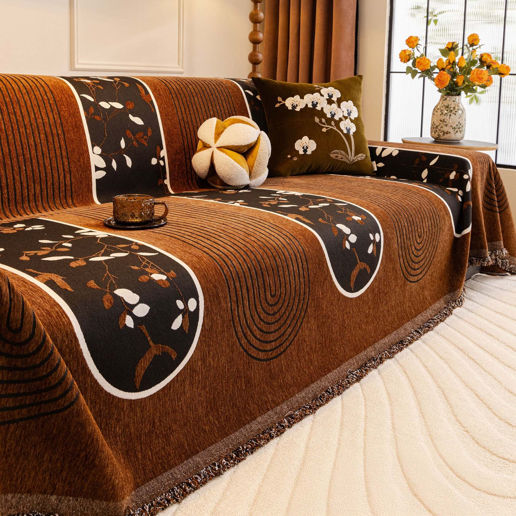 Soft Plush Pet-Friendly Durable Multi-Purpose Lightweight Vintage Sofa Cover – Woven Throw Couch Protector