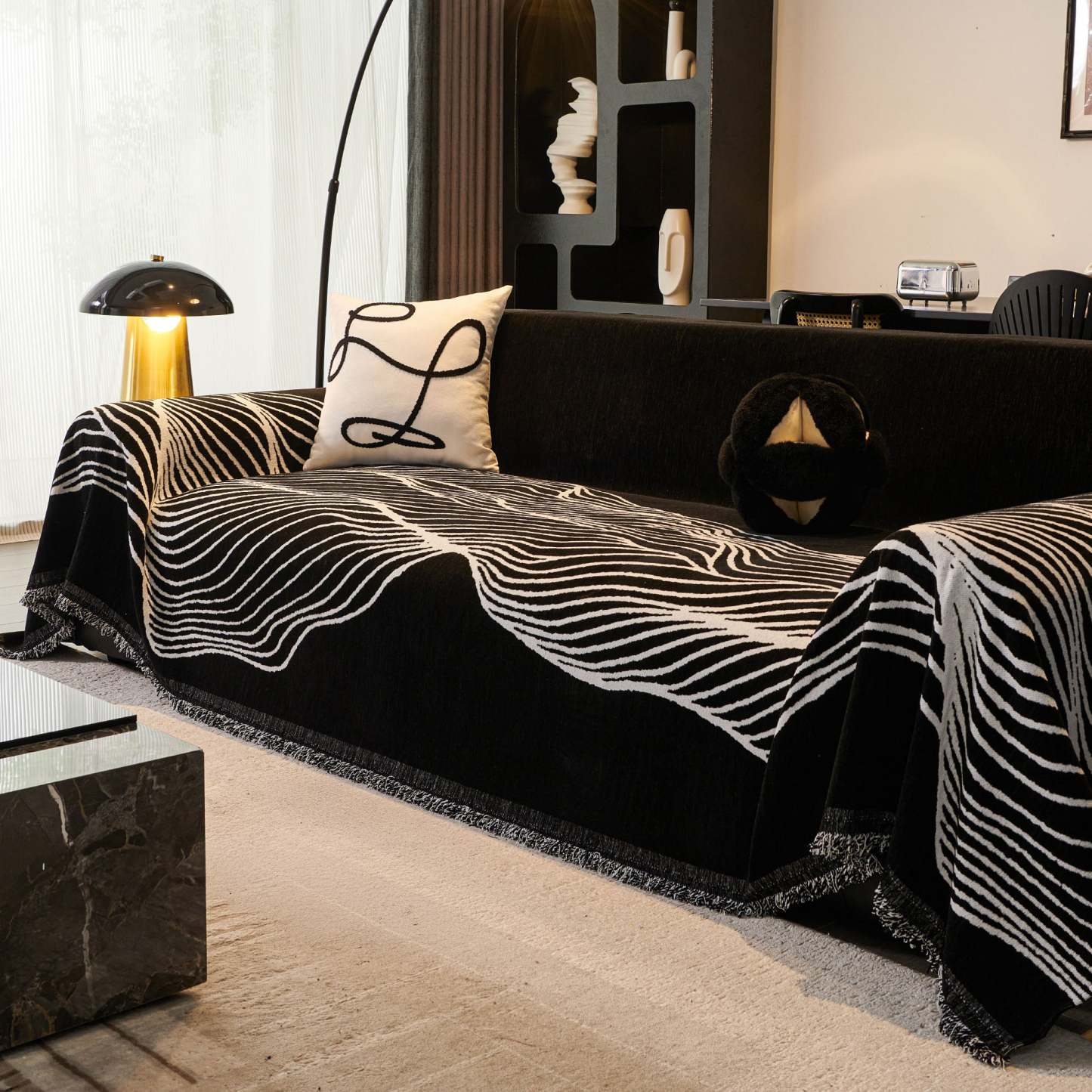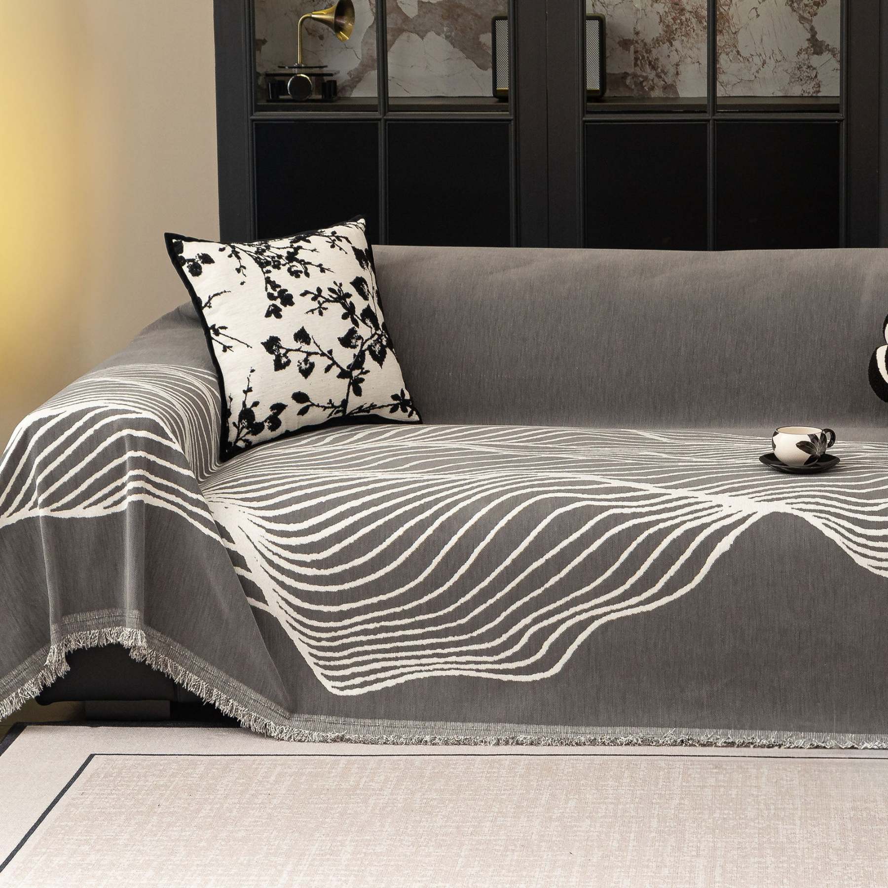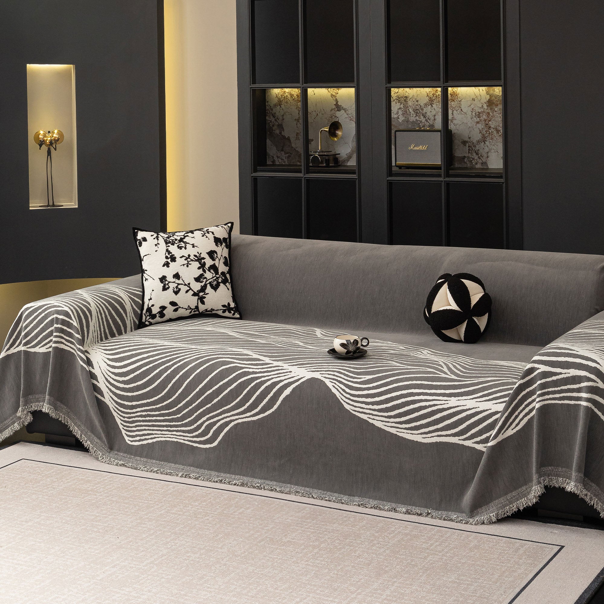 Soft Plush Waveline Harmony Pet-Durable Friendly Multi-Purpose Machine Washable Sofa Cover – Woven Throw Couch Protector