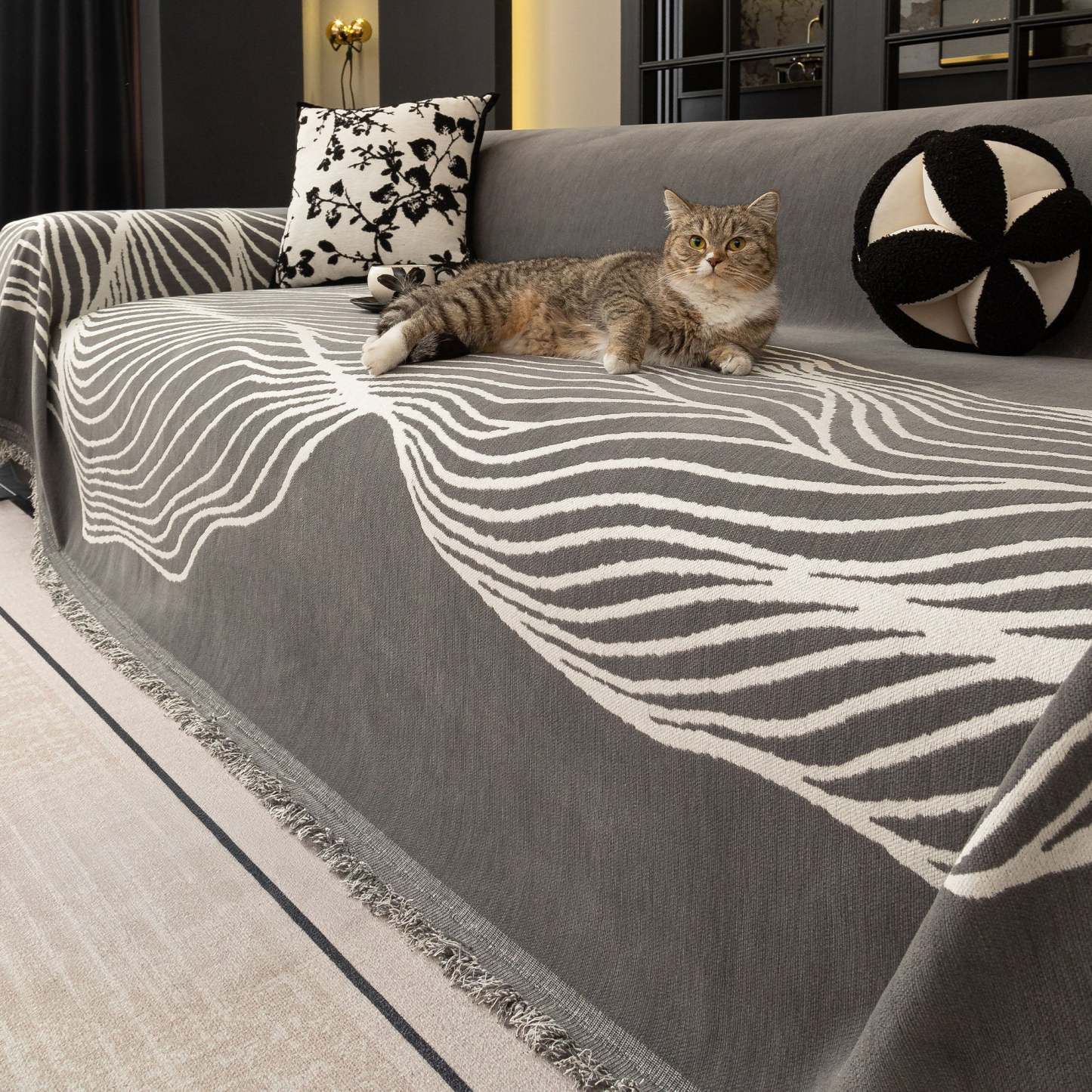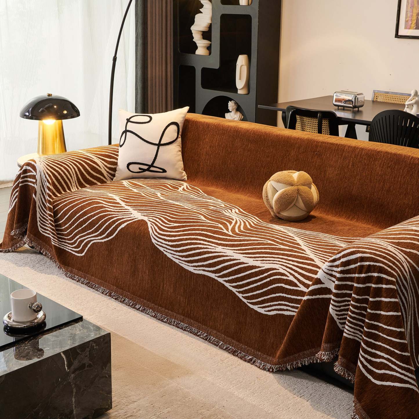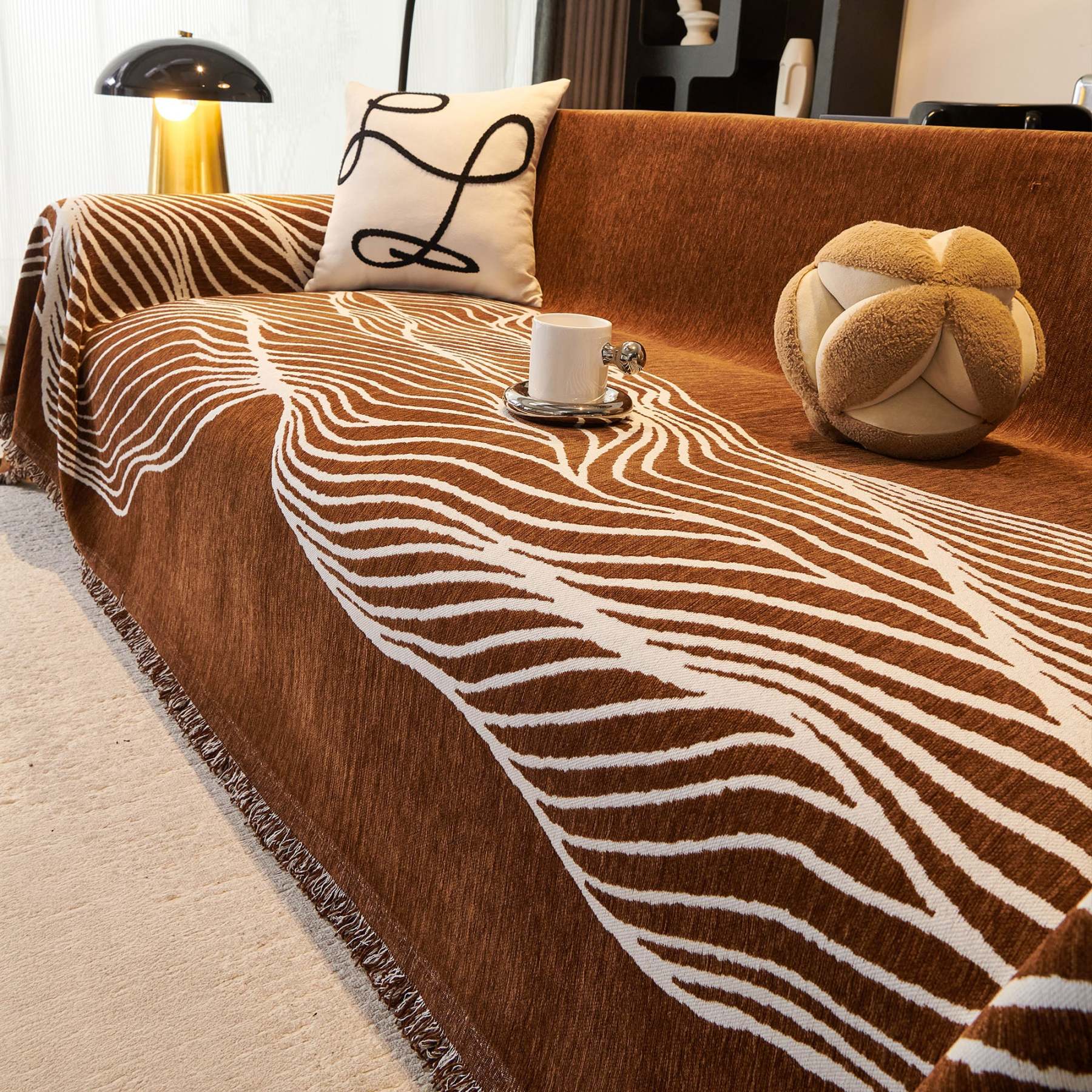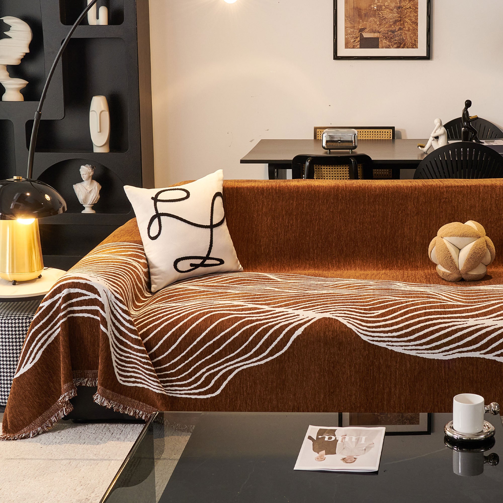 Soft Plush Waveline Harmony Pet-Durable Friendly Multi-Purpose Machine Washable Sofa Cover – Woven Throw Couch Protector
