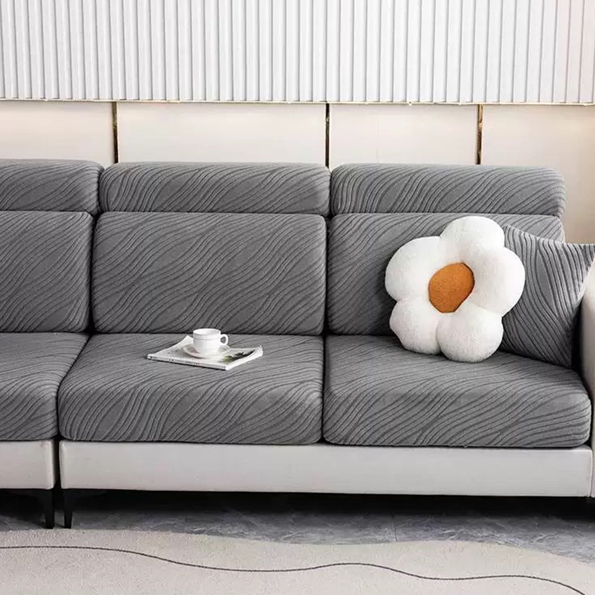 WaveLuxe Ripple Stretch Sofa Cover – Anti-Scratch, Full-Cover Pet Protector